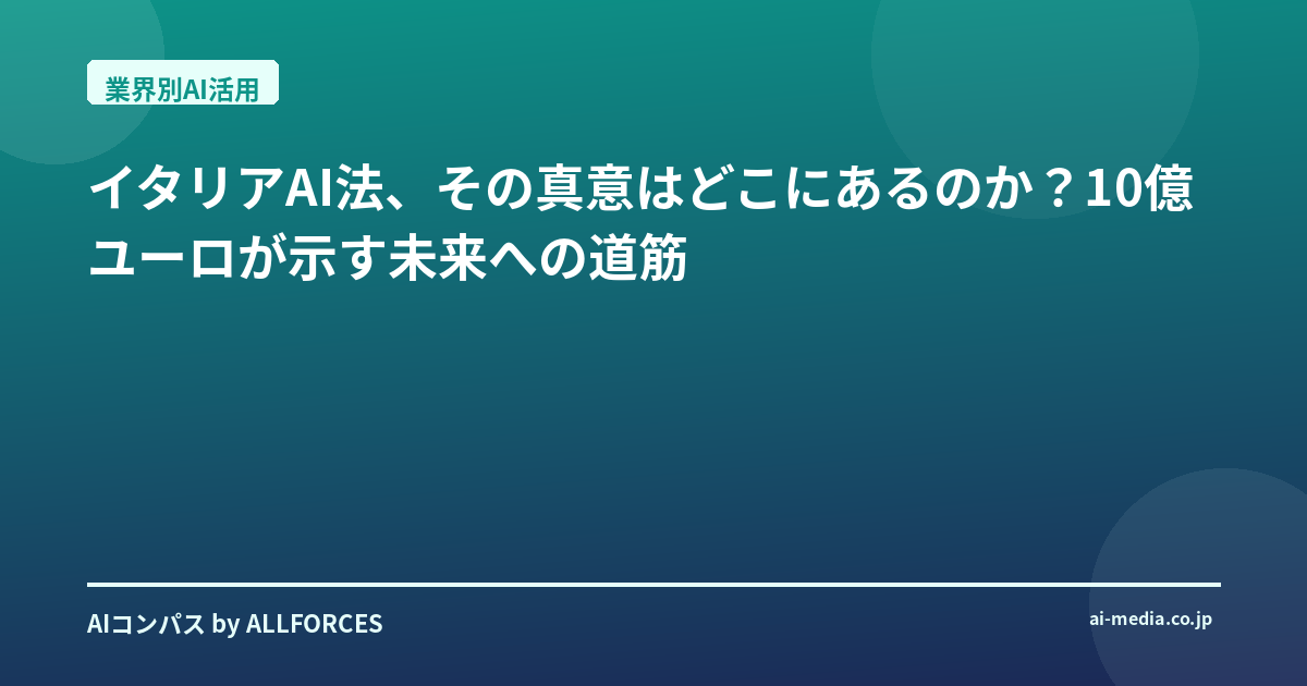 イタリアAI法、その真意はどこにあるのか?10億ユーロが示す未来への道筋
