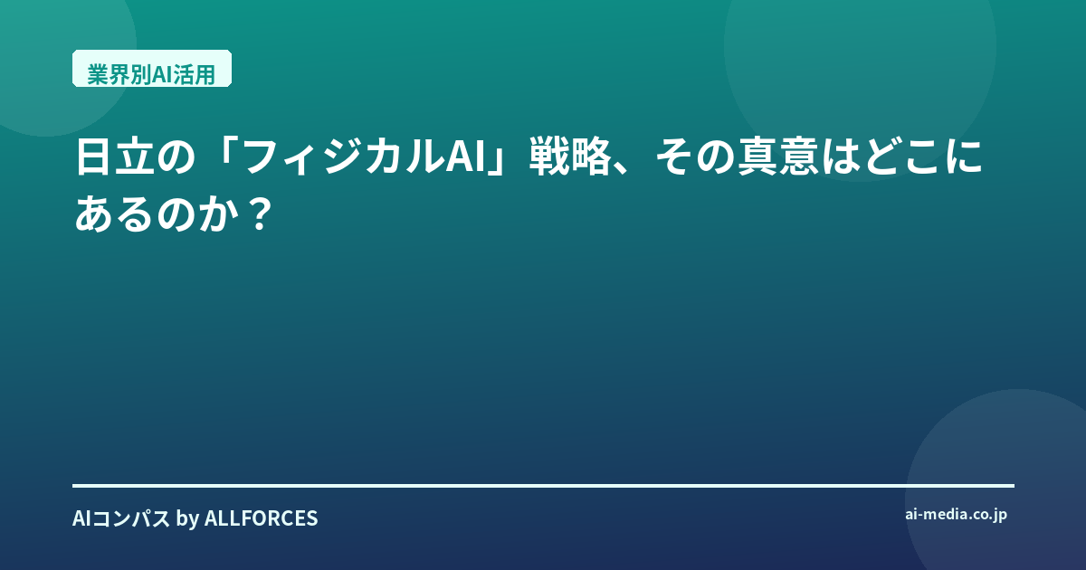 例えば、自動運転車が事故を起こした時、誰が責任を負うのか。あるいは、AIが推奨する保守作業が、従来の熟練者の判断と異なる場合、現場はどちらを優先すべきなのか。こうした問いに明確な答えを出すには、AIモデルの「説明可能性」や「頑健性」を極限まで高める必要があります。日立が目指す「フィジカルAI」は、まさにこうした複雑な現実世界の問題に、真正面から向き合おうとしているわけです。 信頼性と社会受容性を築くための対話 フィジカルAIの社会実装を進める上で、技術的な側面だけでなく、こうした倫理的・社会的な課題への取り組みは避けて通れません。AIが現実世界に介入し、人々の生活や安全に直接影響を与えるからこそ、その「信頼性」と「社会受容性」をいかに築くかが、成功の鍵を握ると私は考えています。日立が「カスタマーゼロ」戦略で自ら実践し、実績を積み重ねていくのは、単に技術的な検証だけでなく、現場での運用における課題を洗い出し、人間とAIが協調するための最適なバランスを見つけるという、非常に重要な意味を持っているのではないでしょうか。 AIの判断がなぜその結論に至ったのかを人間が理解できる「説明可能性(Explainable AI: XAI)」の追求は、特に重要です。現場の熟練者がAIの推奨を受け入れるためには、「なぜそうなのか」という納得感が不可欠だからです。また、予期せぬ状況や異常事態にもAIが適切に対応できる「頑健性(Robustness)」も、安全性確保の生命線となります。日立は、これらの課題に対し、長年のOT領域で培ってきた安全思想や品質管理のノウハウを、AI開発に持ち込むことで、他社にはない強みを発揮できるはずです。 さらに、法整備やガイドラインの策定も、フィジカルAIが社会に浸透するためには不可欠な要素です。自動運転や自律型ロボットの普及が進むにつれて、責任の所在やプライバシー保護、データガバナンスといった論点について、社会全体での議論と合意形成が求められます。日立のようなリーディングカンパニーが、技術開発だけでなく、こうした社会的な対話にも積極的に関与していく姿勢は、業界全体の健全な発展にとっても極めて重要だと、私は個人的に感じています。 日立が描く「フィジカルAI」実現への具体的な道筋 では、日立はこの困難な道のりをどのように乗り越えようとしているのでしょうか? 私が注目しているのは、彼らが長年培ってきた「ドメイン知識」と「OT(制御・運用技術)の知見」を、最新のAI技術と融合させるアプローチです。これは、単にAI技術を導入するだけでなく、現場の深い理解と、そこで実際にAIを「使いこなす」ためのノウハウが不可欠だということを示唆しています。 彼らの「カスタマーゼロ」戦略は、この点で非常に理にかなっています。自分たちでまずAIを徹底的に現場で活用し、その過程で生まれる課題を解決し、成功事例を積み重ねる。そうすることで、顧客が抱えるであろう共通の課題を先回りして解決し、導入時のハードルを下げる。これは、まさに現場を知り尽くした企業だからこそできる、地に足の着いた戦略だと評価できます。 HMAXが鉄道分野で培われた技術を基盤としているのも、この「現場からのフィードバック」を重視する姿勢の表れでしょう。鉄道システムは、まさにフィジカルAIが求められる複雑な環境の典型です。安全性、定時運行、効率性、そして膨大な設備の保守。これらすべてをAIで最適化するには、現実世界での膨大なデータと、それを扱うためのOTの知識が不可欠です。HMAXをエネルギー、製造、金融・公共といった他産業へ展開する際も、鉄道で得られた知見が横展開されることで、導入のスピードと信頼性が高まることが期待されます。 また、日立が自社で大規模言語モデル(LLM)を開発するのではなく、Google Cloud、NVIDIA、OpenAIといった主要なプレーヤーとのパートナーシップを重視している点も賢明な判断だと感じます。AIの基盤技術は日進月歩で進化しており、その開発競争に自社で全てを投じるのは非常にリスクが高い。日立の強みは、あくまでOTとIT、そしてドメイン知識を組み合わせた「アプリケーション層」での価値創出にあります。外部のトップランナーが提供する最先端の基盤技術を