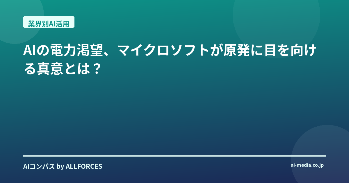 AIの電力渇望、マイクロソフトが原発に目を向ける真意とは? 「え、マイクロソフトが原発に投資?」──正直なところ、このニュースを最初に聞いた時、私もあなたと同じように驚いたんじゃないでしょうか?シリコンバレーの華やかなAIスタートアップから、日本の重厚長大企業まで、20年間この業界の変遷を間近で見てきた私にとっても、これはかなり衝撃的な一報でした。AIの進化が電力インフラにまで影響を及ぼすとは、一体何が起きているのか、その真意を探ってみましょう。 あなたも感じているかもしれませんが、AIの爆発的な成長は、私たちの想像をはるかに超える電力需要を生み出しています。データセンターの消費電力は、もはや尋常ではありません。私がこの業界に入った頃、データセンターの電力効率は常に議論の的でしたが、それはあくまで「効率化」の範疇でした。しかし、今やその議論は「どうやって必要な電力を確保するか」という、より根源的な問いへとシフトしています。国際エネルギー機関(IEA)の予測では、AIデータセンターの消費電力は2023年から2028年の間に2倍になると言われています。具体的には、2028年までに857テラワット時(TWh)に達する見込みで、これは日本の年間総発電量に匹敵する規模です。この数字を聞くと、マイクロソフトがなぜここまで大胆な一手を打つのか、少しは理解できるのではないでしょうか。 マイクロソフトの動きは、単なる電力確保に留まりません。彼らは同時に