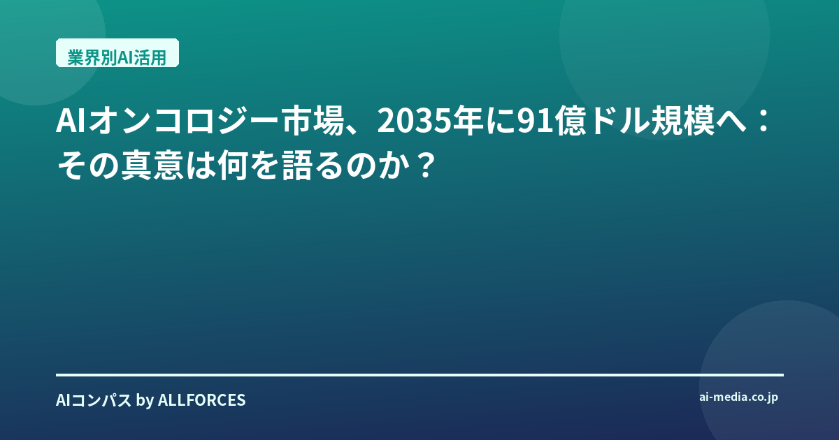 「AIオンコロジー市場が2035年までに91億ドルに達する」というニュース、あなたも目にしましたか?正直なところ、最初にこの数字を見た時、私は「またか」と少し懐疑的になりました。過去20年間、シリコンバレーの華やかな発表から日本の堅実な企業導入まで、AIの「次なる波」を何度見てきたことか。しかし、今回の予測は、単なるバズワードで終わらない、もっと深い意味を持っているように感じています。