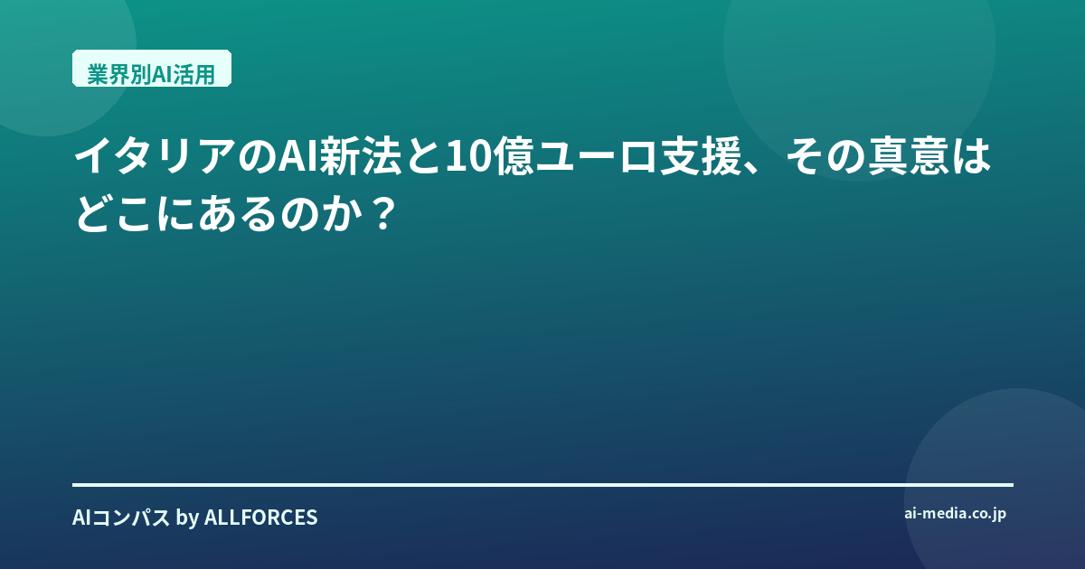 イタリアのAI新法と10億ユーロ支援、その真意はどこにあるのか?