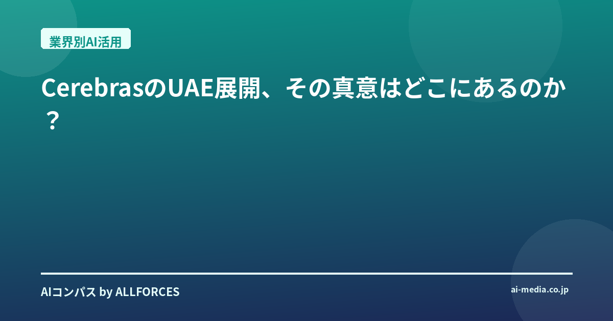 CerebrasのUAE展開、その真意はどこにあるのか?