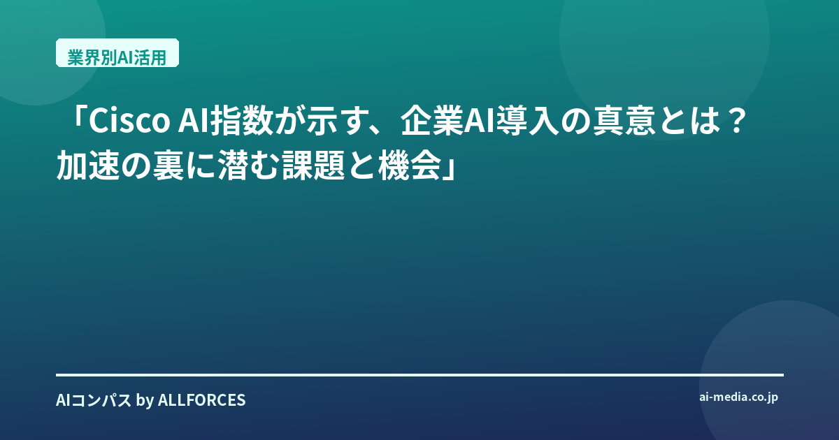 「Cisco AI指数が示す、企業AI導入の真意とは?加速の裏に潜む課題と機会」