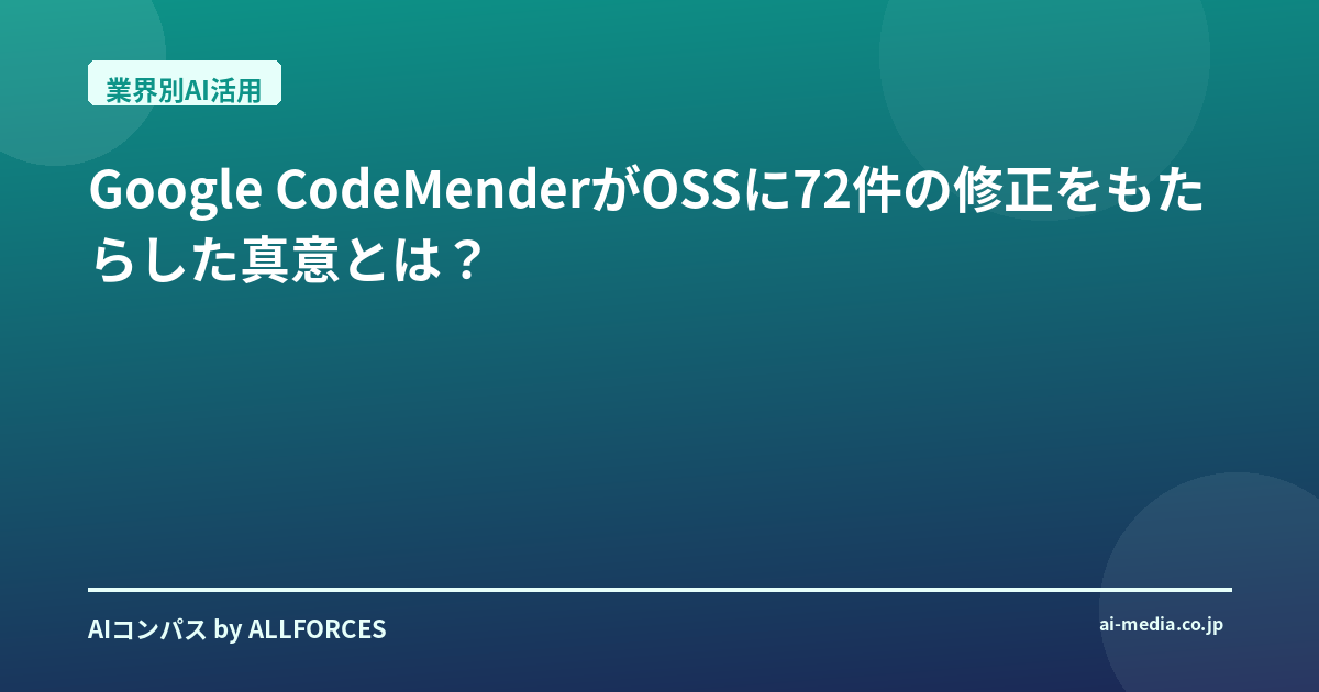 おや、これはまた興味深いニュースが飛び込んできましたね。Google DeepMindのAIエージェント「CodeMender」が、わずか6ヶ月でオープンソースソフトウェア(OSS)に72件ものセキュリティ修正を貢献したという話です。正直なところ、AIがコードを修正する、なんて話はこれまでも何度か耳にしてきましたが、その実用性には常に懐疑的な目を向けてきました。あなたも、同じような感覚を抱いているのではないでしょうか?「本当に使えるのか?」「人間の手を完全に置き換えるのか?」といった疑問が頭をよぎるのも無理はありません。しかし、今回のGoogle CodeMenderの発表は、少しばかり、いや、かなり私の見方を変えさせました。これは単なる技術デモではなく、私たちのソフトウェア開発の未来を大きく変える可能性を秘めている、そう感じています。