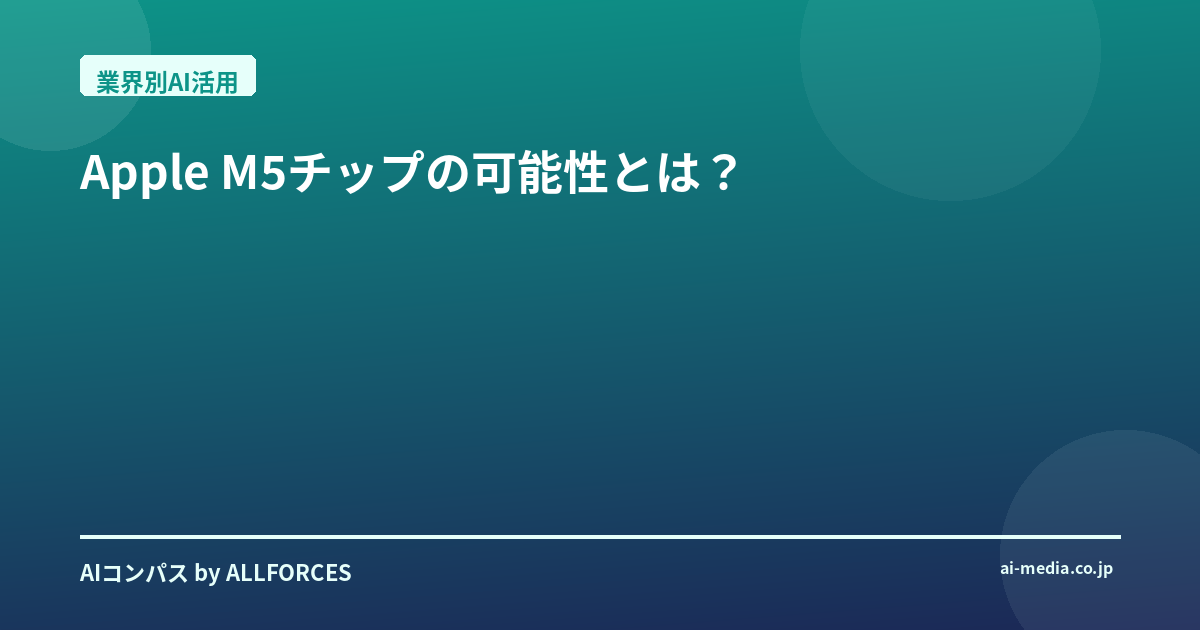 … M5チップが拓く、AIと社会の新たな関係性 M5チップがもたらすオンデバイスAIの普及は、テクノロジー業界だけでなく、私たちの社会全体にも大きな影響を与えることになります。AIがより身近になり、個人のデバイスで高度な処理が可能になることで、情報の民主化が進むでしょう。 考えてみてください。高度なAI機能が、特定の専門家や大規模企業だけでなく、私たち一人ひとりの手元で、そして中小企業でも手の届くものになる未来を。インターネット接続が不安定な場所でも、デバイス上でAI処理が完結するため、場所や環境に左右されずにその恩恵を受けられるようになります。これは、視覚・聴覚障がいを持つ人々へのアクセシビリティを飛躍的に向上させたり、多言語対応をよりスムーズにしたりと、社会包摂の観点からも非常に大きな意味を持つと、個人的には感じています。 そして、最も重要なのは、プライバシーとセキュリティの強化です。オンデバイスAIの最大の利点の一つは、あなたの個人データが外部サーバーに送信されるリスクを劇的に減らせる点にあります。Appleが長年培ってきたプライバシーに対する強いコミットメントと、M5チップのオンデバイス処理能力が組み合わさることで、ユーザーはより安心してAIの恩恵を受けられるようになるでしょう。これは、デジタル社会における信頼の基盤を築く上で、何物にも代えがたい価値を提供します。 M5チップが切り開くのは、単なる利便性の向上だけではありません。医療分野では、個人の健康データに基づいたオンデバイスでの診断支援や、パーソナライズされた健康管理がより手軽になるでしょう。教育分野では、AIが個々の学習者の進捗や理解度に合わせて、リアルタイムでカスタマイズされた教材を生成し、学習体験を劇的に変える可能性を秘めています。また、スマートホームやスマートシティといった分野では、環境データのリアルタイム分析を通じて、エネルギー効率の最適化や災害予測など、社会課題解決への貢献も期待できます。 しかし、この大きな変化の波には、常に新たな課題が伴います。AIの倫理的な利用、公平性の確保、そして生成AIがもたらす誤情報の拡散リスクなど、私たちが真剣に向き合うべき問題も浮上してくるでしょう。M5チップのような強力な技術が普及するからこそ、Appleだけでなく、私たち開発者、ユーザー、そして社会全体が、これらの課題に対してどう向き合い、責任を持って技術を活用していくかが問われることになります。あなたも、この点について深く考える機会が増えるのではないでしょうか。