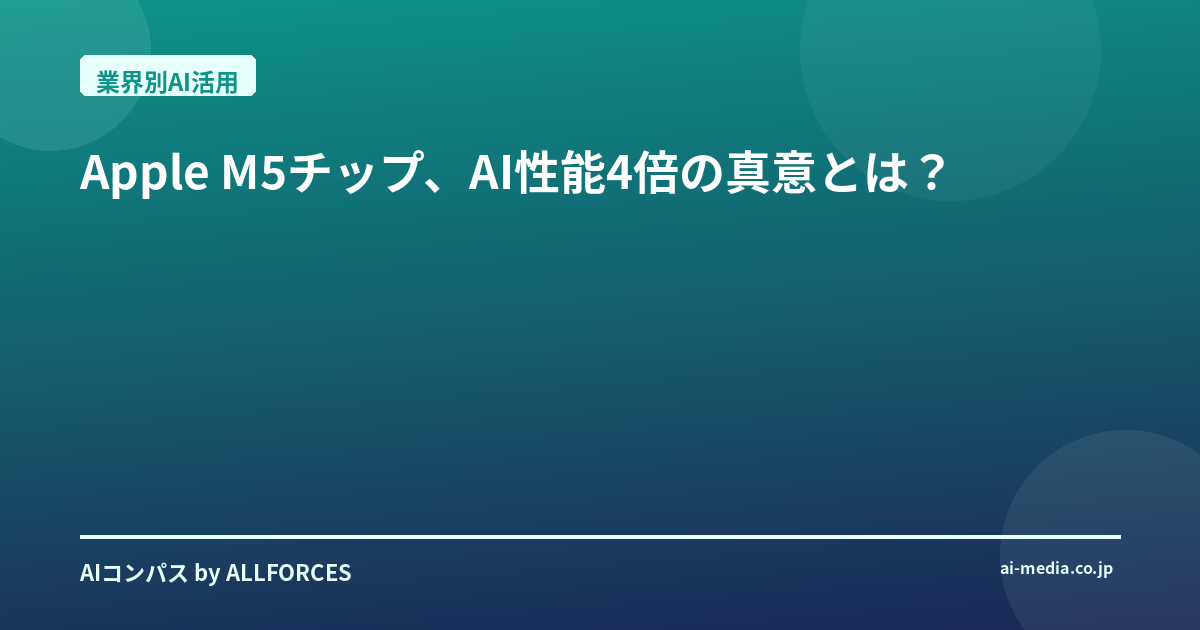 皆さん、こんにちは。AI業界を20年近く見続けてきた私から見ても、今回のApple M5チップの発表は、正直なところ「また来たか」という感覚と、「これは本当に違うかもしれない」という期待が入り混じった複雑なものでしたね。AI性能が4倍向上したというニュース、あなたもきっと耳にしたことでしょう。でも、この「4倍」という数字の裏に、Appleが何を仕掛けているのか、その真意を深く掘り下げてみませんか?