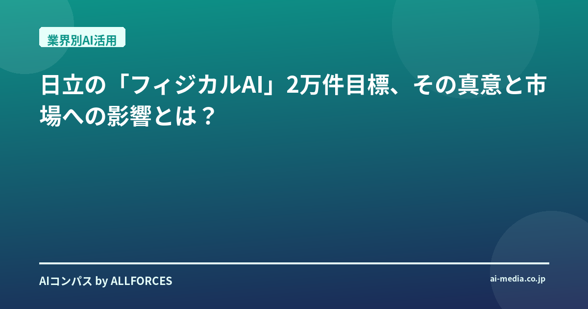 日立の「フィジカルAI」2万件目標、その真意と市場への影響とは?