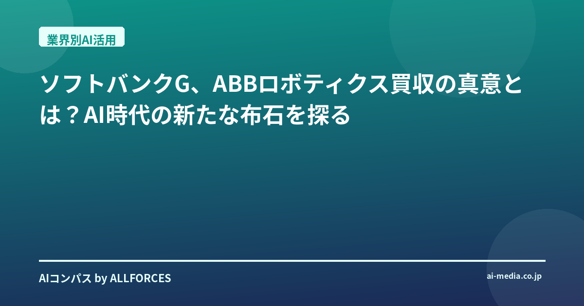 ソフトバンクG、ABBロボティクス買収の真意とは?AI時代の新たな布石を探る ソフトバンクグループがスイスのABB Ltd.からロボティクス事業を53億7500万ドル、日本円にして約8187億円で買収すると聞いて、あなたも「また孫さん、大きな動きに出たな」と感じたのではないでしょうか。正直なところ、個人的には最初、少し驚きました。というのも、ソフトバンクグループはこれまでもSoftBank Robotics Group、Berkshire Grey、AutoStore、Agile Robots、Skild AIといったロボティクス関連企業に投資してきましたが、今回は既存事業の買収という、より直接的なアプローチですからね。これは単なる投資案件ではなく、彼らが描く未来への明確な意思表示だと私は見ています。 私がこの業界を20年近く見てきた中で、AIとロボティクスの融合は常に大きなテーマでした。しかし、その道のりは決して平坦ではありませんでした。かつては「ロボットが人間の仕事を奪う」といった漠然とした不安が先行し、技術的な課題も山積していました。しかし、近年におけるAI技術、特に生成AIの飛躍的な進化は、この状況を一変させつつあります。ソフトバンクグループが今回掲げている「フィジカルAI」構想は、まさにAIの知能とロボティクスの身体を結びつけ、現実世界で自律的に機能するシステムを構築しようというものです。これは、かつてSFの世界でしか語られなかったような未来が、いよいよ現実のものとなる兆しだと感じています。 今回の買収対象であるABBロボティクスは、産業用ロボットの分野で世界的に高い評価を受けている企業です。2024年の売上は22億7900万ドル、約7,000人の従業員を抱え、その技術力、信頼性、そして強固な販売チャネルと幅広い顧客基盤は、まさにソフトバンクグループが欲していたピースだったのではないでしょうか。彼らは単にロボットを製造するだけでなく、製造、物流、医療、サービスといった多様な領域で、すでに多くの実績を持っています。ここにソフトバンクグループが持つAIチップ、AIデータセンター、そして電力といったAIインフラへの積極的な投資戦略が加わることで、どのようなシナジーが生まれるのか、想像するだけでワクワクしますよね。 特に注目すべきは、ソフトバンクグループが目指す「ASI(人工超知能)」の実現に向けた動きです。彼らはAIチップ、AIロボット、AIデータセンター、電力の4分野に注力しており、今回のABBロボティクス買収は、その中でも「AIロボット」事業を飛躍的に強化するものです。AIがどれだけ賢くなっても、それが現実世界で行動し、物理的な影響を与えるためには「身体」が必要です。ABBロボティクスが持つ産業用ロボットのノウハウは、まさにその「身体」をAIに与えるための重要な基盤となるでしょう。 もちろん、この買収が全て順風満帆に進むとは限りません。各国の規制当局の承認を条件に、2026年半ばから後半に完了する見込みですが、大規模なM&Aには常に統合のリスクが伴います。異なる企業文化、技術スタック、そしてビジネスモデルをいかにスムーズに融合させるか。これはソフトバンクグループにとって、大きな腕の見せ所となるでしょう。また、AIロボティクス市場は競争が激しく、Boston Dynamicsのような先進的な企業や、NVIDIA、GoogleといったAI半導体・プラットフォーム企業もこの分野に注力しています。その中で、ソフトバンクグループがどのように差別化を図り、リーダーシップを確立していくのか、今後の動向から目が離せません。 投資家や技術者の皆さんにとって、今回の動きは何を意味するのでしょうか?まず、AIとロボティクスの融合が、もはや未来の夢物語ではなく、現実のビジネスとして加速していることを示しています。製造業におけるスマートファクトリー化、物流における自動倉庫、医療現場での支援ロボット、そしてサービス業における接客ロボットなど、自律ロボットの社会実装は今後ますます進むでしょう。技術者としては、AIとロボティクスの両方の知識を持つ人材の需要が高まることは間違いありません。また、投資家としては、この分野における新たなイノベーションや、それに伴う市場の拡大に注目すべきでしょう。 今回の買収は、ソフトバンクグループが描く壮大なAIエコシステムの一端を垣間見せてくれたように感じます。彼らは単に個別の技術を追いかけるのではなく、AIが社会全体に浸透し、人類の生活を根本から変えるような未来を見据えている。そのビジョンを実現するために、彼らはこれからも大胆な投資と戦略的な動きを続けていくはずです。あなたはこの「フィジカルAI」の時代に、どのような役割を果たしていきたいですか? あなたはこの「フィジカルAI」の時代に、どのような役割を果たしていきたいですか?この問いかけは、決して遠い未来の話ではありません。むしろ、今、私たちがどう行動するかで、その未来の姿は大きく変わるでしょう。ソフトバンクグループの今回の動きは、まさにその変革