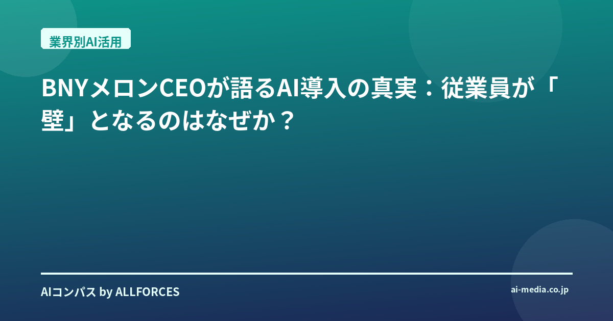 BNYメロンの事例は、AI導入の成功が、技術的な優位性だけでなく、いかにリーダーシップが従業員を巻き込み、ビジョンを共有できるかにかかっているかを物語っています。ヴィンスCEOの言葉からは、AIを単なるツールとしてではなく、企業文化そのものを変革する「触媒」として捉える強い意志が感じられます。