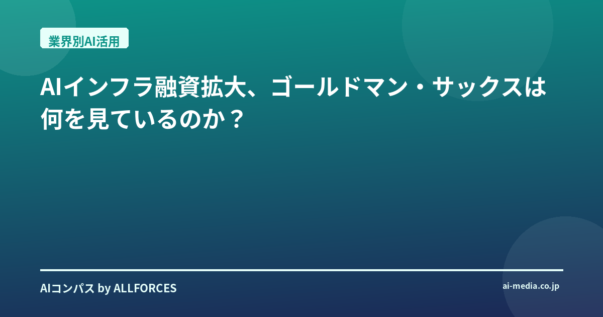 AIインフラ融資拡大、ゴールドマン・サックスは何を見ているのか?