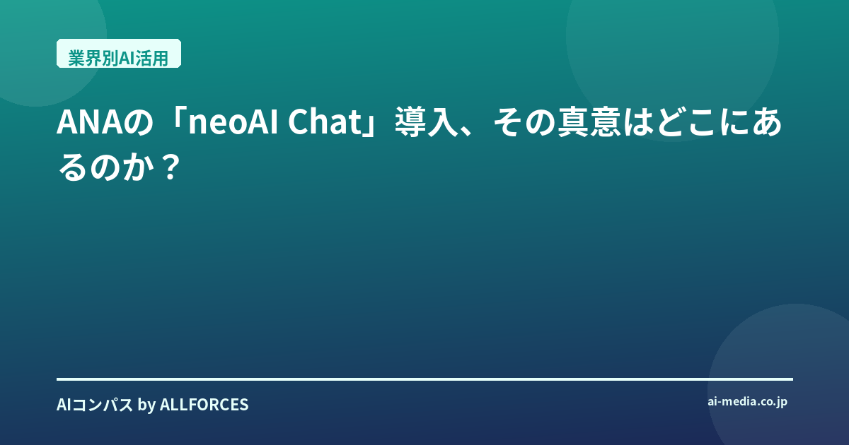 ANAの「neoAI Chat」導入、その真意はどこにあるのか?