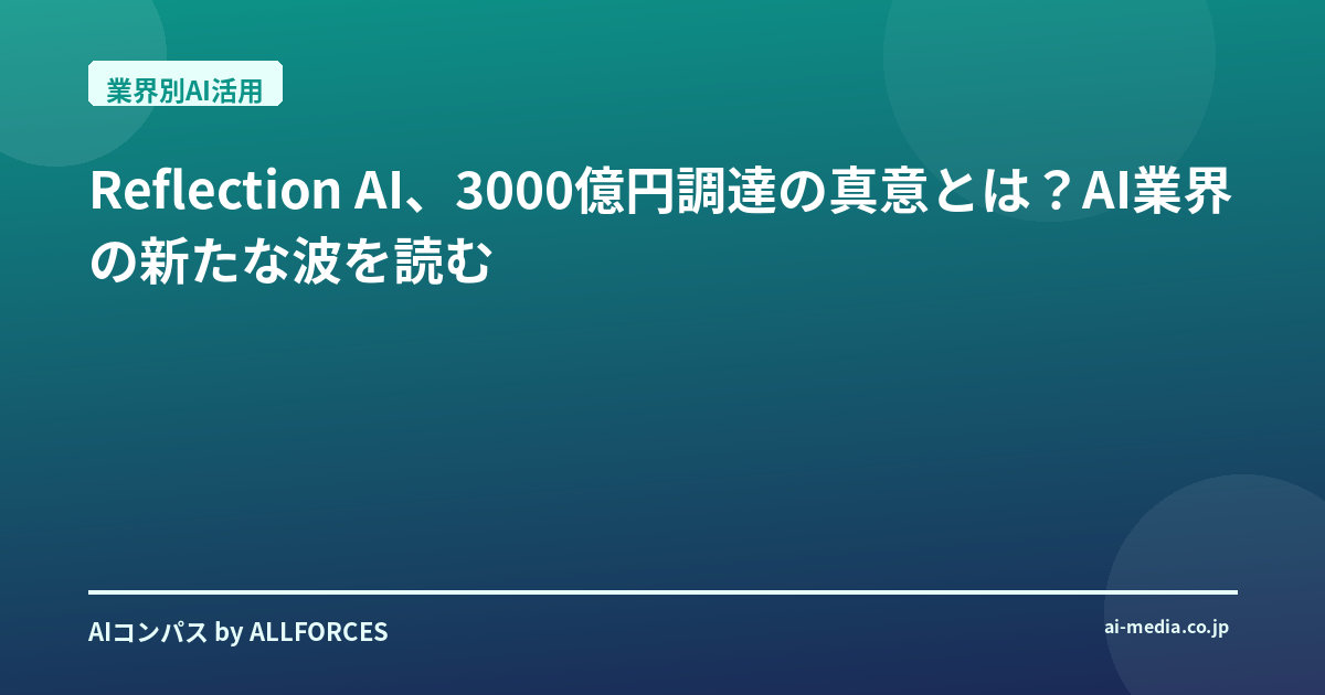 Reflection AI、3000億円調達の真意とは?AI業界の新たな波を読む 正直なところ、このニュースを聞いた時、またか、と思いましたね。Reflection AIが3000億円もの巨額を調達したという話。あなたも感じているかもしれませんが、最近のAI業界は、毎週のように「〇〇社が△△億円調達!」というニュースが飛び交っていて、正直、どれが本当に意味のある動きなのか、見極めるのが難しくなってきていますよね。でも、今回のReflection AIの件は、ちょっと立ち止まって考える価値がある。そう、これは単なる資金調達の話ではないんです。 私がこの業界を20年近く見てきた中で、Google DeepMind出身者が立ち上げたスタートアップが、これほど短期間で注目を集めるケースは決して珍しくありません。彼らは常に最先端の技術と深い洞察力を持っていて、その動向は常にウォッチしてきました。しかし、今回のReflection AIの動きは、彼らが単なる技術オリエンテッドな企業に留まらない、より大きな戦略的意図を持っていることを示唆しています。 彼らは当初、自律型コーディングエージェントの開発に注力していたと聞きます。これはこれで非常に興味深い分野で、開発者の生産性を劇的に向上させる可能性を秘めています。しかし、今回の資金調達の規模と、彼らが「OpenAIやAnthropicのようなクローズドなAIラボ、そして中国のDeepSeekに対抗するオープンフロンティアAIラボ」としての地位を確立しようとしているという報道は、彼らの野心がはるかに大きいことを物語っています。企業価値が1.2兆円に達したというのも、その期待値の表れでしょう。 特に注目すべきは、Nvidiaがこのラウンドを主導している点です。Nvidiaは、AIチップ市場で圧倒的なシェアを誇り、AIインフラの根幹を支える存在です。彼らがReflection AIに巨額の投資をするということは、単に有望なスタートアップを支援するだけでなく、自社のエコシステムをさらに強化し、将来のAI市場における主導権を確固たるものにしようという戦略的な狙いがあるはずです。Lightspeed Venture Partners、Sequoia Capital、DST Global、1789 Capitalといった名だたるVCが名を連ねているのも、このプロジェクトのポテンシャルを物語っています。 Reflection AIが目指しているのは、企業向けの基盤モデル、そしてソブリンAIシステムを開発する政府をターゲットにしているという点です。これは、企業が自社でAIを制御したいという強いニーズに応えるものです。OpenAIやAnthropicのモデルが非常に強力である一方で、そのクローズドな性質や、特定のベンダーへの依存を懸念する声も少なくありません。Reflection AIが「オープンフロンティアAIラボ」を標榜し、2026年初頭に「数十兆のトークン」でトレーニングされた最初のフロンティア言語モデルをリリースする計画は、この市場の隙間を狙った非常に賢明な戦略と言えるでしょう。 投資家や技術者の皆さんにとって、この動きは何を意味するのでしょうか?まず、基盤モデルの競争は、さらに激化するということです。そして、単に高性能なモデルを作るだけでなく、企業や政府が安心して使える「制御可能」なAIの需要が高まっていることを示しています。これは、セキュリティ、プライバシー、そしてガバナンスといった側面が、技術的な性能と同じくらい重要になる時代が来ている、ということでもあります。 個人的には、この「オープンフロンティアAIラボ」というコンセプトが、今後のAI業界の多様性を生み出す鍵になるのではないかと期待しています。もちろん、Nvidiaの強力な支援があるとはいえ、OpenAIやAnthropicといった先行する巨大企業との競争は容易ではありません。しかし、彼らがDeepMind