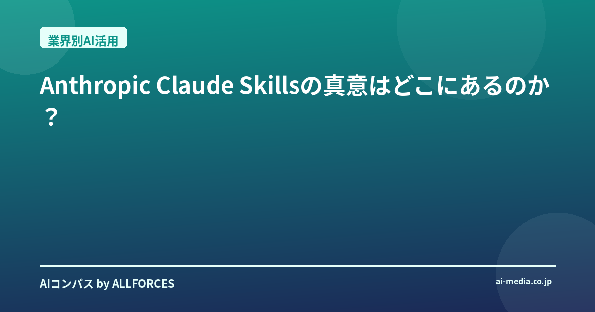 Anthropic Claude Skillsの真意はどこにあるのか?
