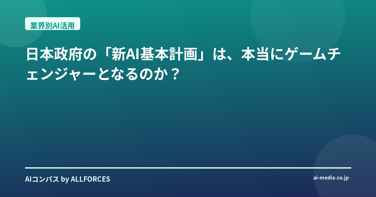 日本政府の「新AI基本計画」は、本当にゲームチェンジャーとなるのか?