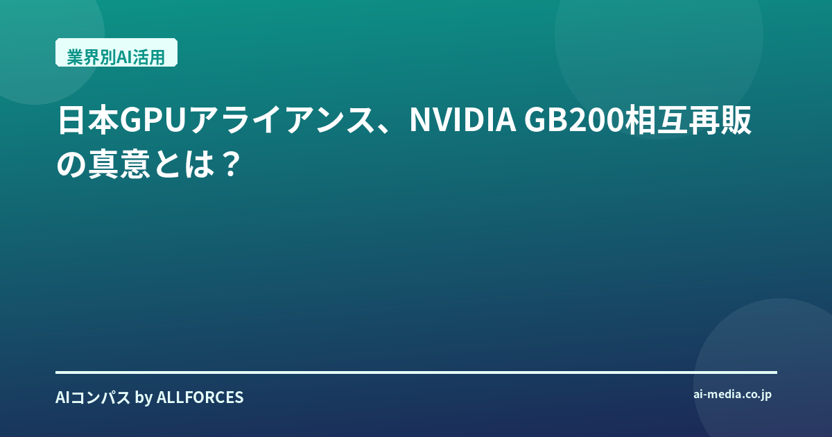 日本GPUアライアンス、NVIDIA GB200相互再販の真意とは?