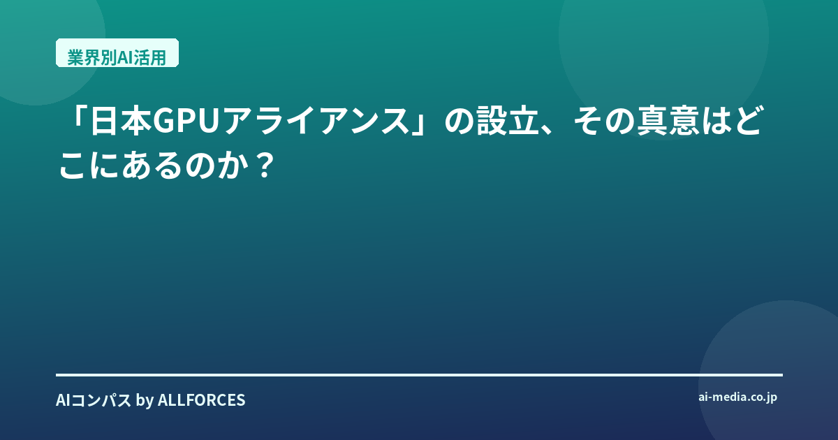 「日本GPUアライアンス」の設立、その真意はどこにあるのか?