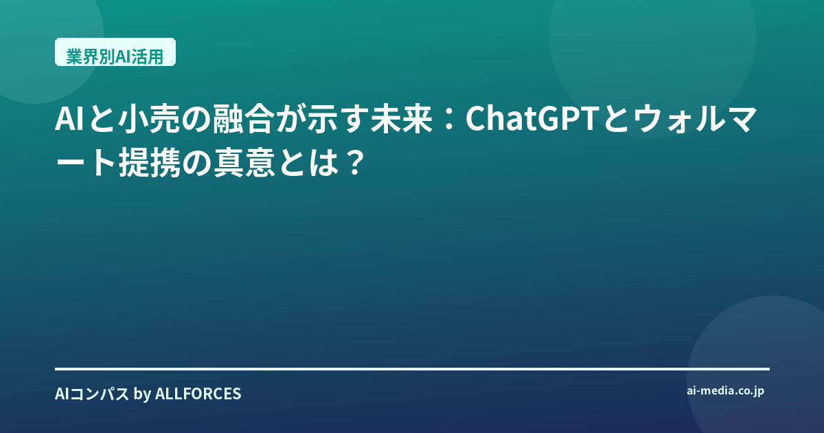 OpenAIにとっても、ウォルマートとの提携は、ChatGPTを単なる会話AIから、実世界で「行動」し「価値を創造する」AIへと進化させる、まさに試金石となるでしょう。小売業界という、非常に複雑