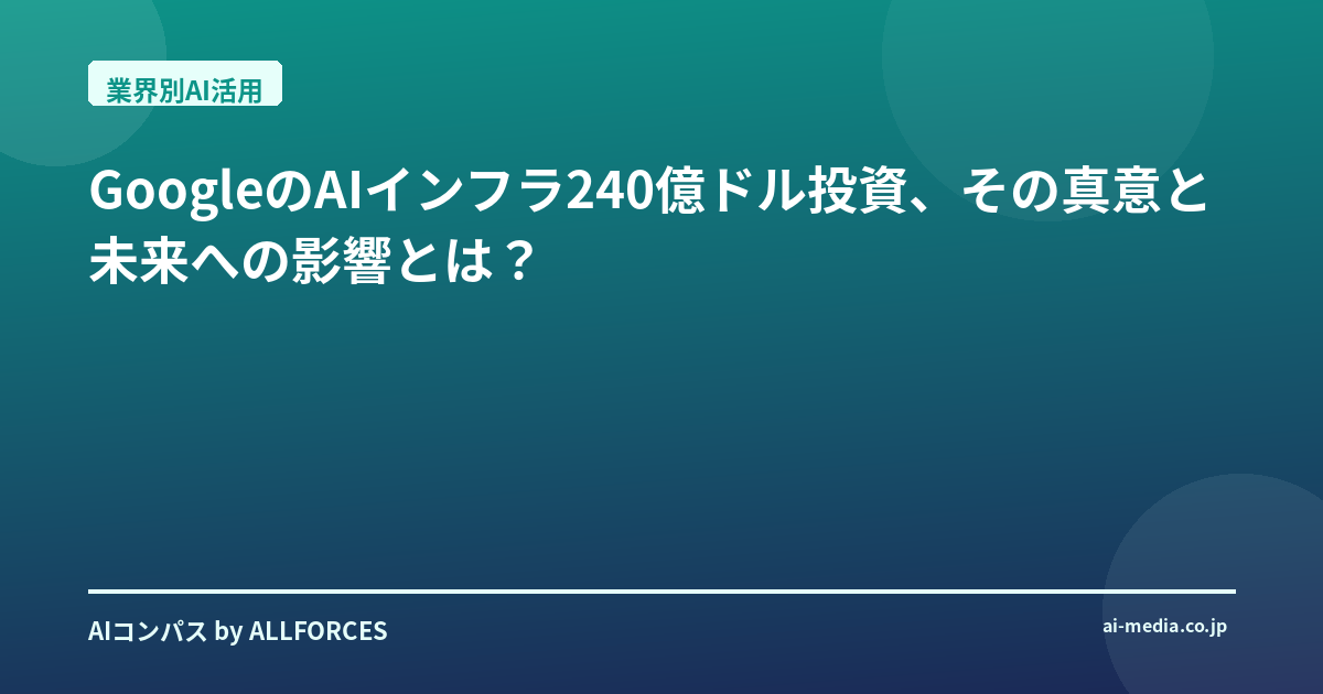 GoogleのAIインフラ240億ドル投資、その真意と未来への影響とは? 「GoogleがAIインフラに240億ドル投資」――このニュースを聞いて、あなたも「またか」と感じたかもしれませんね。正直なところ、私も最初はそう思いました。AI業界を20年近く見てきた人間としては、この手の巨額投資の発表はもはや日常茶飯事。しかし、今回のGoogleの動きは、単なる数字の羅列以上の深い意味を持っていると、私は見ています。これは、AIの未来を形作る上で、非常に重要な一手になる可能性を秘めているんですよ。