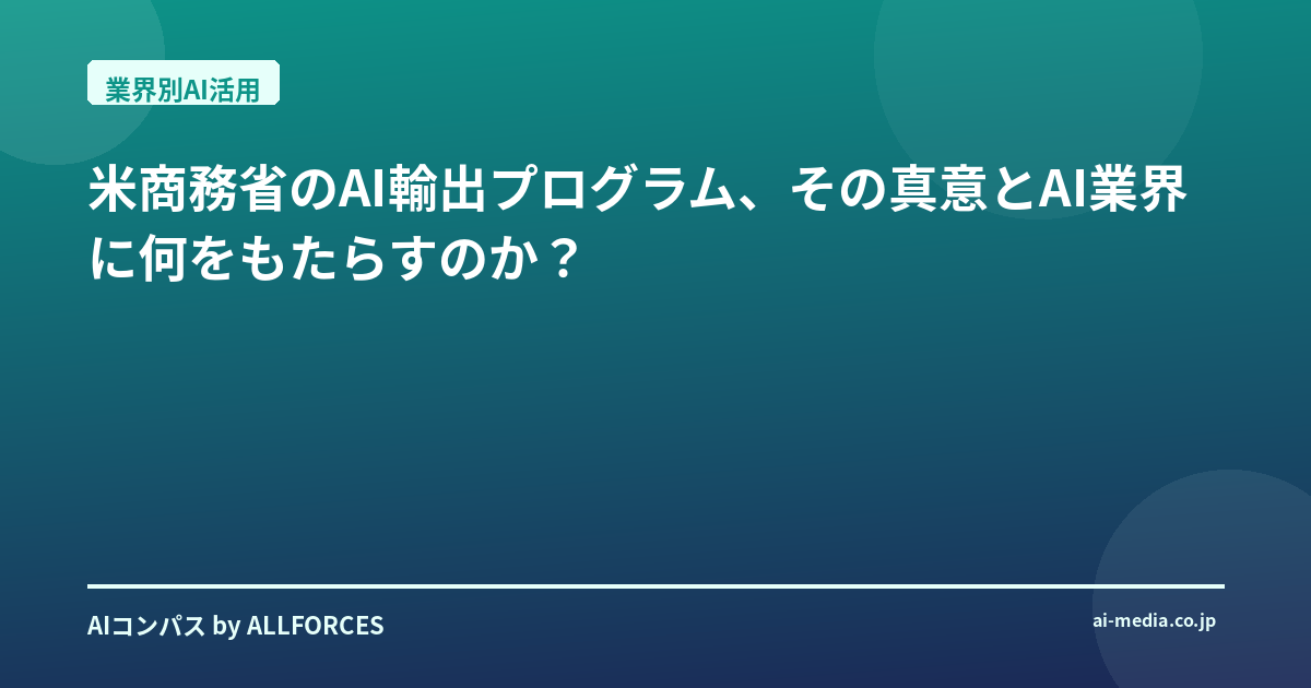 米商務省のAI輸出プログラム、その真意とAI業界に何をもたらすのか?