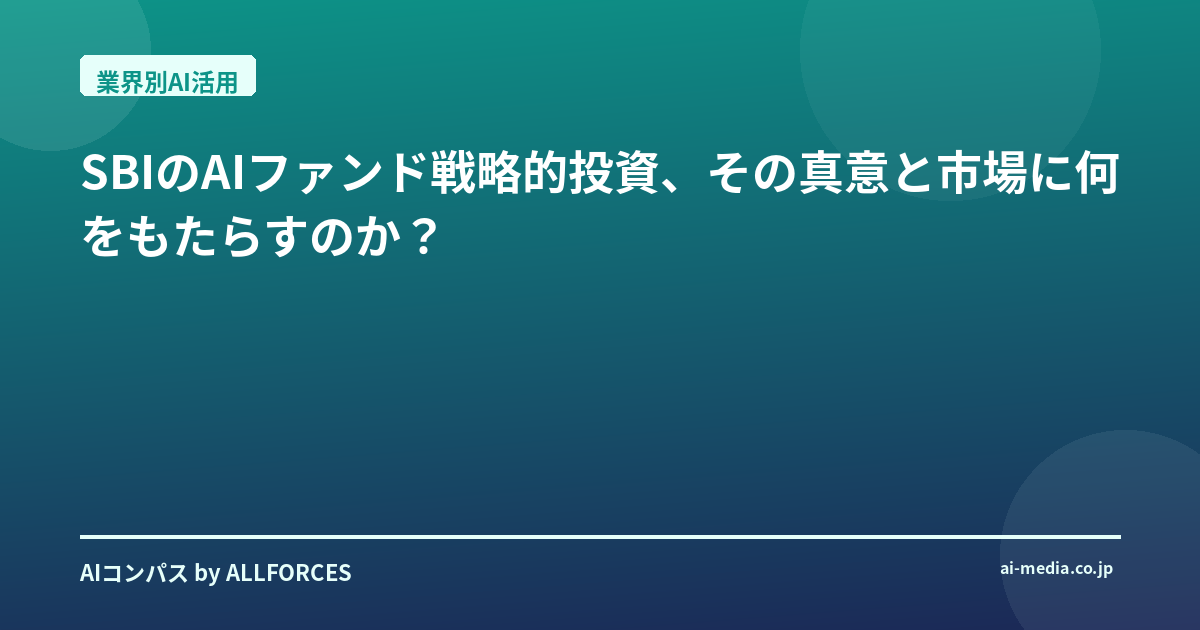 SBIのAIファンド戦略的投資、その真意と市場に何をもたらすのか?