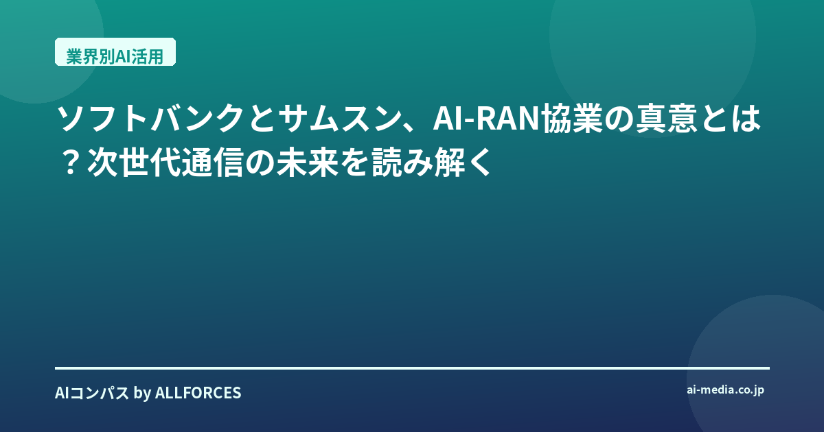 ソフトバンクとサムスン、AI-RAN協業の真意とは?次世代通信の未来を読み解く 「また新しいアライアンスか」――正直なところ、ソフトバンクとサムスンがAI-RAN(AIベースの無線アクセスネットワーク)で協業するというニュースを聞いた時、私の最初の感想はそんな感じでした。あなたも、この業界で長年働いていると、華々しい発表の裏に隠された真の狙いや、それが本当に市場を変えるインパクトを持つのかどうか、つい深読みしてしまう癖がありませんか?でもね、今回はちょっと違うかもしれない。そう思わせるだけの「何か」が、この協業には秘められているように感じています。 私がこの業界に入って20年、シリコンバレーのガレージスタートアップから日本の巨大企業まで、数えきれないほどのAI導入プロジェクトを見てきました。その中で痛感するのは、技術の本質を見抜くことの難しさと、それがビジネスにどう結びつくかを見極める重要性です。AI-RANという言葉自体は、まだ耳慣れないかもしれませんが、これは単なるバズワードで終わる話ではない。次世代通信、特に6Gを見据えた時、ネットワークのあり方を根本から変える可能性を秘めているんです。 今回の協業の核心は、2024年初頭に設立された「AI-RAN Alliance」に両社が創設メンバーとして名を連ねていることからも伺えます。このアライアンスには、Amazon Web Services(AWS)、Arm、DeepSig、エリクソン、マイクロソフト、ノキア、NVIDIAといった錚々たる顔ぶれが参加している。これは、AI-RANが特定のベンダーの思惑だけで動くのではなく、業界全体で標準化とエコシステム構築を進めようとしている証拠だと見ています。 具体的に彼らが何をしようとしているのか、もう少し掘り下げてみましょう。協業の柱は大きく分けて4つあります。 まず1つ目は「6G標準化」への共同研究。これは当然の流れですよね。5Gの次に来る6Gは、単に速いだけでなく、AIがネットワークの隅々まで浸透し、自律的に最適化される世界を目指しています。7GHz帯のような新しい周波数帯の活用も議論されており、物理層(Layer 1)からAIを組み込むことで、これまでのネットワークとは一線を画す性能を引き出そうとしているわけです。 2つ目は「RAN最適化のためのAI(AI for RAN)」。これは、AIが無線ネットワークをリアルタイムで監視し、人間の介入なしにパフォーマンスを自動調整したり、トラフィックルーティングを最適化したり、リソースを効率的に管理したりする技術です。例えば、特定のエリアで急激にデータ通信量が増えた場合、AIが瞬時に判断して帯域を広げたり、別の基地局に負荷を分散させたりする。これまでのネットワーク運用では考えられなかったような、柔軟で効率的な運用が可能になるでしょう。 そして3つ目が「AIとRANのオーケストレーション(AI and RAN)」。これは、基地局の設備を単に通信のためだけに使うのではなく、AIアプリケーションの実行基盤としても活用しようという発想です。つまり、RANの設備がAIワークロードも処理することで、設備投資効率を最大化し、通信事業者にとって新たな収益機会を生み出すことを目指しています。エッジコンピューティングの進化と密接に関わる部分で、個人的にはここに大きなビジネス