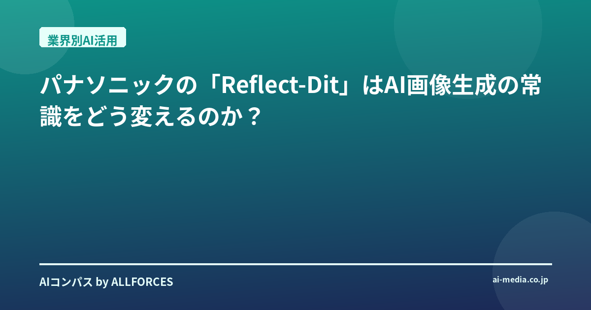 パナソニックの「Reflect-Dit」はAI画像生成の常識をどう変えるのか?