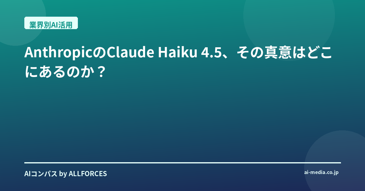 AnthropicのClaude Haiku 4.5、その真意はどこにあるのか?