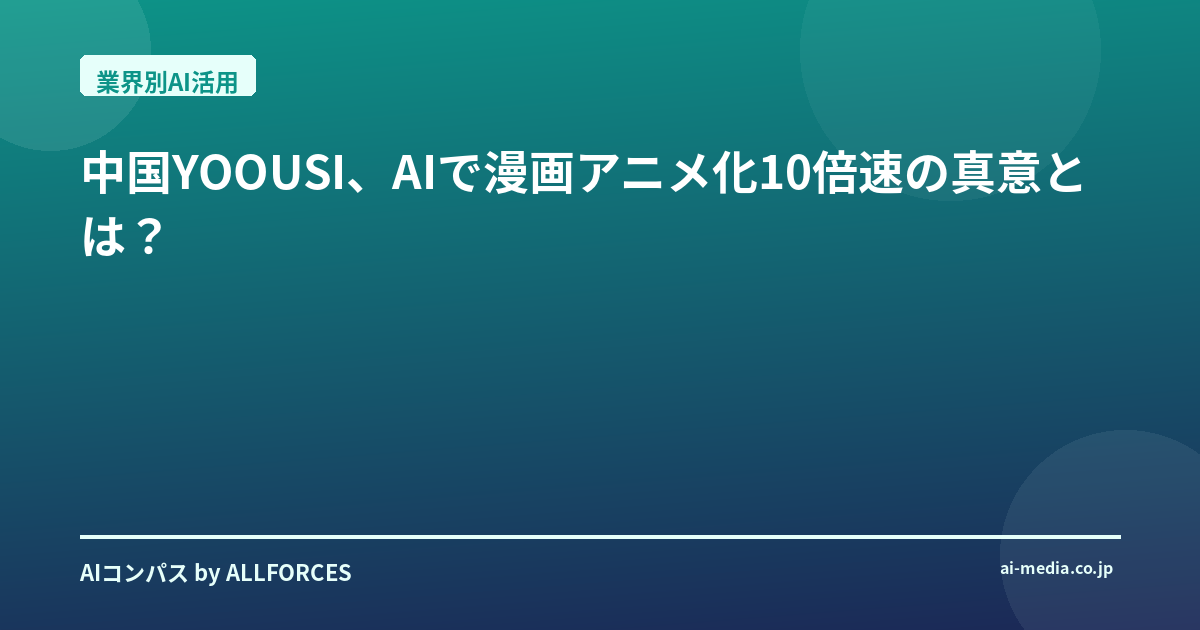 中国YOOUSI、AIで漫画アニメ化10倍速の真意とは?