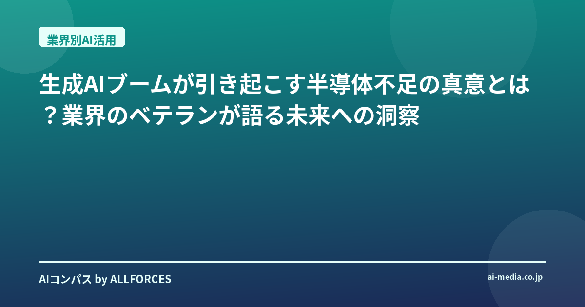 生成AIブームが引き起こす半導体不足の真意とは?業界のベテランが語る未来への洞察