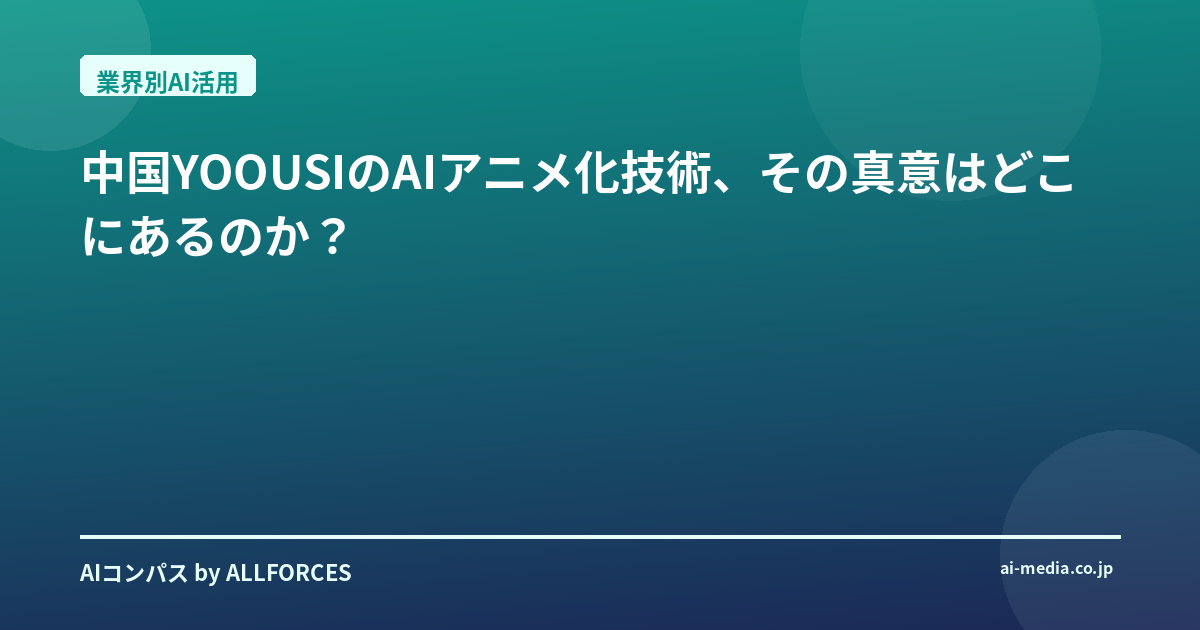 中国YOOUSIのAIアニメ化技術、その真意はどこにあるのか?
