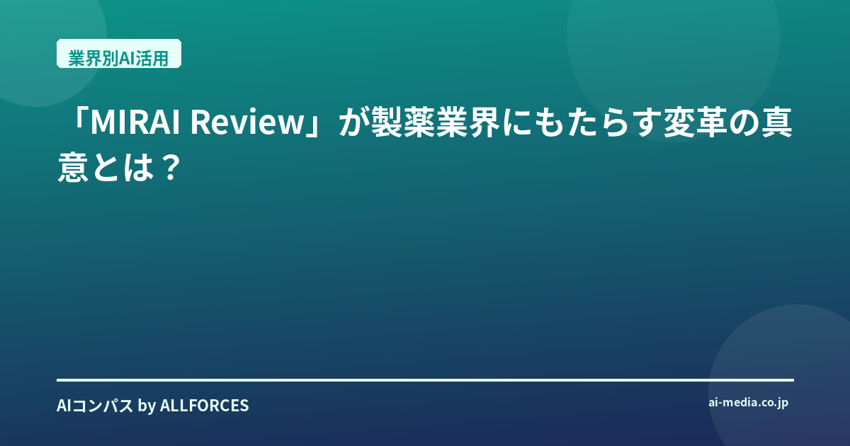 個人的には、「MIRAI Review」が単なるコスト削減ツールに留まらず、製薬企業の競争力を高め、ひいては社会全体の利益に貢献する具体的な事例の1つになる可能性を強く感じています。規制の厳しい業界でAIが信頼を勝ち得ていくプロセスは、他の業界にも大きな示唆を与えるはずです。