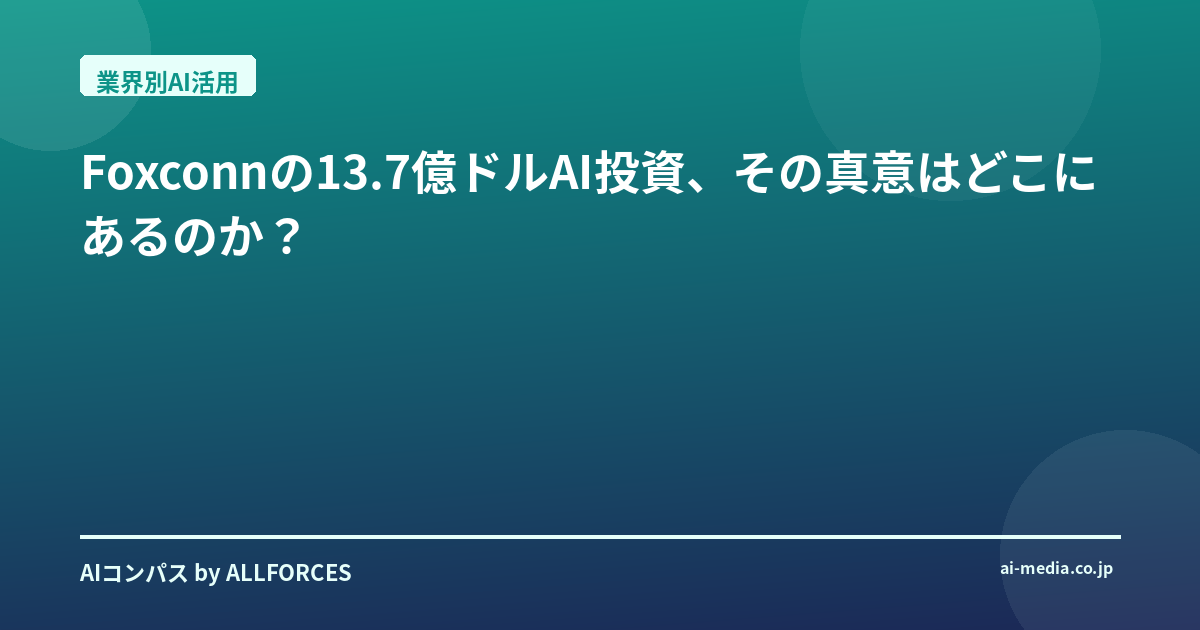 そう問いかけられた時、あなたは何を想像しますか? 個人的には、Foxconnのこの動きは、単に「AIインフラの構築」という言葉では片付けられない、もっと深遠な企業変革の物語の始まりだと感じています。彼らは、自社のDNAそのものを書き換えようとしているのかもしれません。