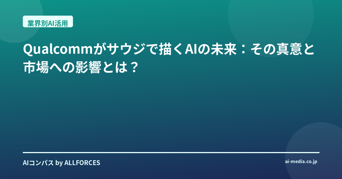 Qualcommとサウジアラビアの壮大な挑戦が、AI業界にどのような新たな地平を切り開くのか、そしてそれが私たちの未来をどう変えていくのか、その動向から目が離せません。私たちは今、AIが社会のあらゆる側面に深く根ざし、新たな価値を生み出す、まさにその転換点に立っているのです。