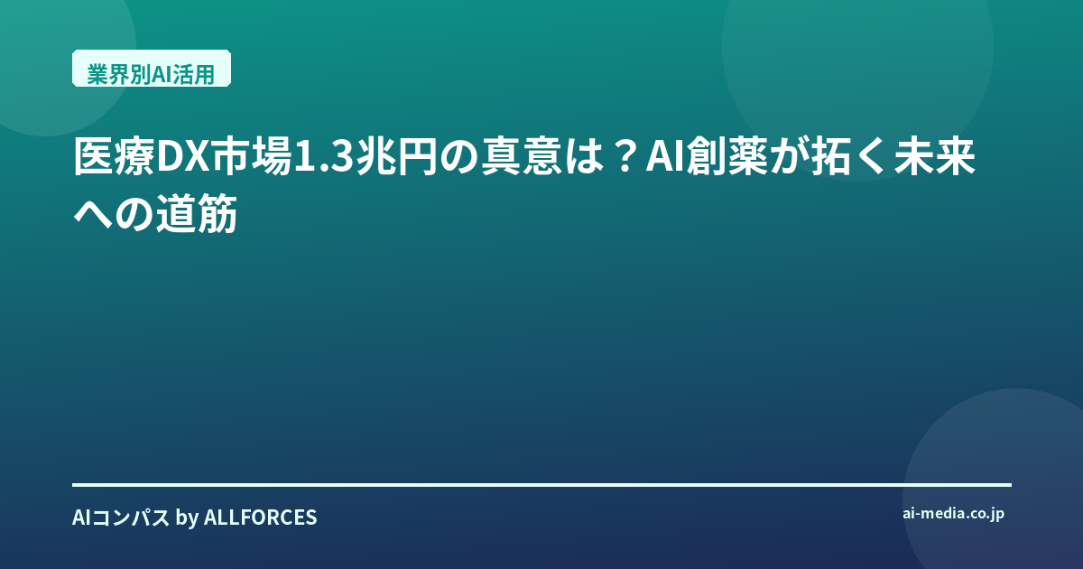 この未来を、ぜひあなたと共に築いていきたい。 「共に築く」という言葉は、もしかしたら少し壮大に聞こえるかもしれませんね。しかし、この医療DXの変革期においては、まさに私たち一人ひとりの主体的な行動と連携が求められていると、私は強く感じています。投資家としてのあなたには、単に有望なテクノロジーに資金を投じるだけでなく、その技術が社会にどのようなポジティブな影響をもたらすのか、そしてその影響が持続可能であるかという視点を常に持ち続けてほしい。例えば、ESG投資の観点から、AI創薬ベンチャーのガバナンス体制や社会貢献へのコミットメントを評価するのも良いでしょう。彼らが開発する薬が、特定の人々だけでなく、より多くの患者さんにアクセス可能な形で提供されるためのビジネスモデルを持っているか、という視点も非常に重要になってきます。 技術者であるあなたには、常に「なぜ?」という問いを胸に、既存の枠組みにとらわれずに挑戦し続ける姿勢を期待しています。AIモデルの精度向上はもちろん大切ですが、その成果をいかに実世界の医療現場に落とし込み、患者さんのQOL向上に直結させるか。そのためには、医師や看護師といった医療従事者との対話を重ね、彼らの抱える真の課題を理解し、AI技術で解決できる糸口を探すことが不可欠です。個人的な経験から言わせてもらうと、最も革新的なアイデアは、往々にして異なる分野の専門家同士が膝を突き合わせて議論する中で生まれるものです。異分野融合のワークショップやハッカソンに積極的に参加してみるのも、新たな視点を得る良い機会になるでしょう。 そして、私たち全員が忘れてはならないのは、医療DXが目指す究極の目標は、決して技術の自己目的化ではないということです。それは、人間がより健康で豊かな生活を送れるようにするための「手段」であるべきです。AIが診断を支援し、創薬を加速させ、予防医療を普及させることで、私たちは病気になる前の段階で介入し、健康寿命を延ばすことが可能になります。これは、個人の幸福だけでなく、社会全体の医療費負担の軽減にも繋がり、持続可能な社会の実現に大きく貢献するはずです。 しかし、この壮大な未来を実現するためには、まだまだ乗り越えるべき壁がたくさんあります。データプライバシーの保護、AIの倫理的な利用、そして何よりも、デジタル技術の恩恵がすべての人々に公平に行き渡るような社会システムの構築です。特に、高齢者や情報弱者の方々がデジタルヘルスケアから取り残されないよう、アクセシビリティの向上やデジタルリテラシー教育の推進は、急務と言えるでしょう。 医療DX市場1.3兆円という数字は、単なる経済的な予測値ではありません。それは、人類が長年抱えてきた病という根源的な課題に対し、テクノロジーという強力な武器で挑む、私たちの決意と希望の現れだと私は捉えています。AI創薬が切り拓く道は、まだ始まったばかりかもしれません。しかし、その先に広がるのは、これまで想像もできなかったような、より健康で、より充実した人生を送れる未来です。 この変革の波の中で、私たち一人ひとりが「問い続ける力」を羅針盤として、倫理的な視点と社会的な責任感を持ちながら、共に新しい医療のカタチを創造していくこと。それこそが、この大きな挑戦の真髄だと信じています。この道は決して平坦ではないでしょうが、その困難を乗り越えた先に、真に誰もが健康で豊かな人生を送れる社会が待っていると、私は確信しています。さあ、この未来を、共に現実のものにしていきましょう。