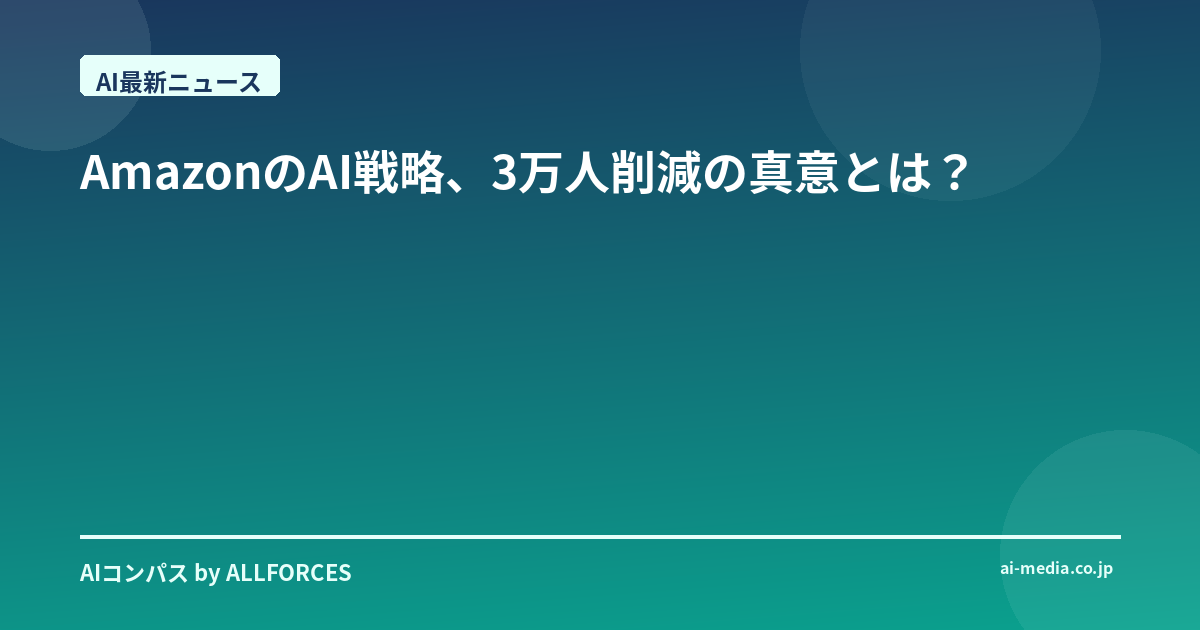 このAmazonの動きは、他の大企業にも大きな影響を与えるでしょう。あなたの会社では、このニュースをどう受け止めていますか?そして、AIがもたらす未来の働き方について、あなた自身はどう考えていますか?