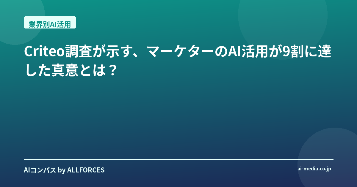 Criteo調査が示す、マーケターのAI活用が9割に達した真意とは? いやはや、最近のAIの進化には本当に目を見張るものがありますね。Criteoの最新調査で「マーケターの9割がAIを活用している」という結果が出たそうですが、正直、皆さんも「またAIか」と感じたかもしれませんね。私も最初は「ふむ、ついにここまで来たか」と、どこか冷静に受け止めていました。でも、この数字の裏には、私たちが想像する以上に深い変化が隠されているんですよ。 私がこの業界で20年近くAIの動向を追いかけてきた中で、75%以上の企業が「AI導入」という言葉に踊らされてきたのを見てきました。一時期は、AIというだけで投資が集まり、実態が伴わないプロジェクトも少なくありませんでした。しかし、今回のCriteoの調査「消費者とマーケターから見たAIエージェント:認知・活用意向に関する調査」は、単なるバズワードとしてのAIではなく、マーケティングという具体的なビジネス領域で、いかにAIが深く根付き始めているかを示しているんです。これは、シリコンバレーのスタートアップから日本の大企業まで、私が間近で見てきた数百社のAI導入事例の中でも、特に注目すべき転換点だと感じています。 調査結果を詳しく見ていくと、マーケターの実に93%がAIエージェントの活用に高い期待を寄せているというんですから、これはもう「期待」というより「確信」に近いレベルですよね。特に印象的だったのは、顧客理解を深めるための市場調査において、9割ものマーケターがAIを活用しているという点です。これまでの市場調査といえば、膨大なデータを手作業で分析したり、アンケート結果を統計的に処理したりと、時間と労力がかかる作業の連続でした。それが今や、AIがその重労働を肩代わりし、より深く、より多角的なインサイトを瞬時に引き出している。これは業務効率化の範疇を超え、戦略立案や意思決定支援といった、マーケティングの根幹をなす部分にまでAIが食い込んでいる証拠です。 考えてみてください。デジタル広告の世界では、日々膨大なデータが生成されています。ユーザーの行動履歴、購買パターン、ウェブサイトでの滞在時間、クリック率、コンバージョン率…これら全てを人間が手動で分析し、最適な広告戦略を立てるのは至難の業です。そこにAIが介入することで、パーソナライズされた広告配信、リアルタイムでのキャンペーン最適化、さらには未来のトレンド予測までが可能になる。例えば、Googleの広告プラットフォームやMetaの広告ツールでは、すでにAIがバックエンドで複雑なアルゴリズムを動かし、広告主のROI最大化に貢献しています。Adobeのマーケティングクラウド製品群も、AIを活用した顧客体験のパーソナライズを強力に推進していますよね。 もちろん、AI導入には課題も山積しています。データの質、プライバシー問題、そしてAIが導き出した結果を人間がどう解釈し、最終的な意思決定に繋げるかという「AIリテラシー」の問題も無視できません。正直なところ、AIが提示する「最適解」が、必ずしも人間の直感や経験と一致しないこともあります。そこをどうバランスさせるか、これは技術者にとってもマーケターにとっても、永遠のテーマになるでしょう。 では、この状況で投資家や技術者は何をすべきでしょうか?投資家の方々には、単にAIという言葉に飛びつくのではなく、どのAI技術が具体的なビジネス課題を解決し、持続的な価値を生み出しているのかを見極める目が必要です。特に、マーケティング領域に特化したAIソリューションを提供するスタートアップや、既存のマーケティングプラットフォームにAI機能を深く統合している企業には注目すべきでしょう。技術者の方々には、単にAIモデルを構築するだけでなく、そのモデルが実際のマーケティング現場でどのように活用され、どのようなビジネスインパクトを生むのかを理解することが求められます。例えば、自然言語処理(NLP)技術を使った顧客感情分析や、強化学習を用いた広告予算の最適化など、具体的な応用例を深く掘り下げていくことが重要です。 このCriteoの調査結果は、AIがマーケティングの「当たり前」になりつつあることを示唆しています。しかし、これはあくまで始まりに過ぎません。AIエージェントがさらに進化し、自律的にマーケティング活動を行う未来が来た時、私たちの仕事や役割はどのように変わっていくのでしょうか?そして、その変化に私たちはどう適応していくべきなのでしょうか?皆さんも、この問いについて、ぜひ一度じっくり考えてみてください。 私たちが直面しているのは、単なるツールの進化に留まらない、マーケティングのパラダイムシフトです。AIエージェントがさらに進化し、自律的にマーケティング活動を行う未来が来た時、私たちの仕事や役割はどのように変わっていくのでしょうか?そして、その変化に私たちはどう適応していくべきなのでしょうか? 個人的な見解としては、