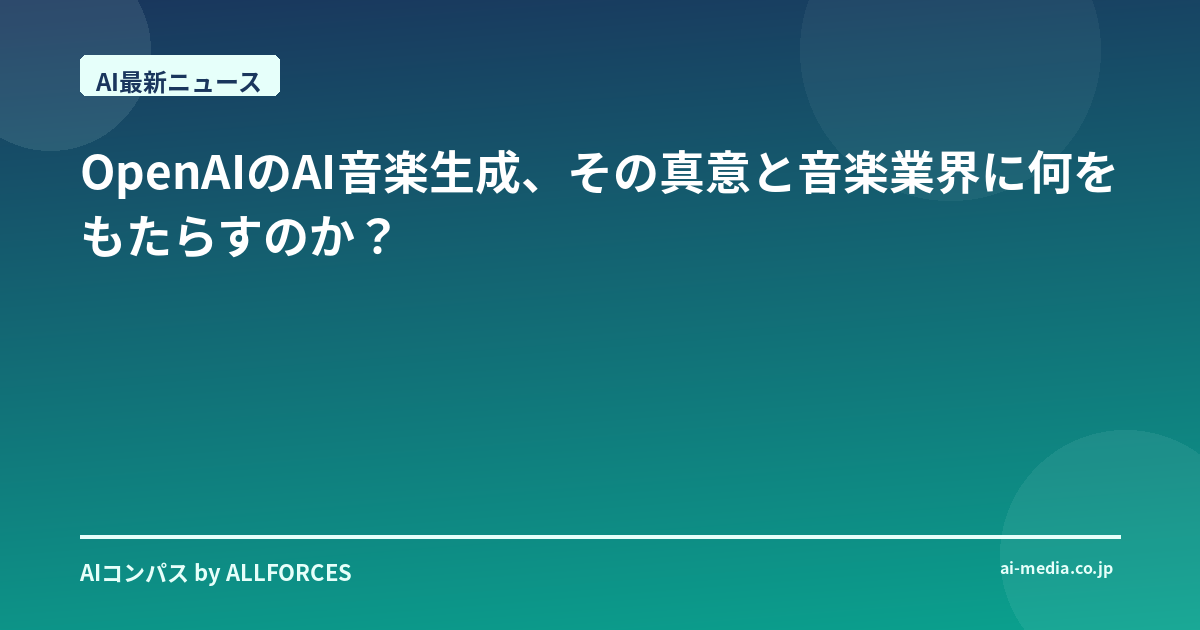 最終的に、OpenAIのAI音楽生成ツールが、私たちの音楽体験をどのように変えていくのか。それはまだ誰にも分かりません。しかし、1つだけ確かなのは、音楽の未来が、これまで以上にエキサイティングなものになるだろうということです。あなたはこの新しい波に、どのように向き合っていきますか?