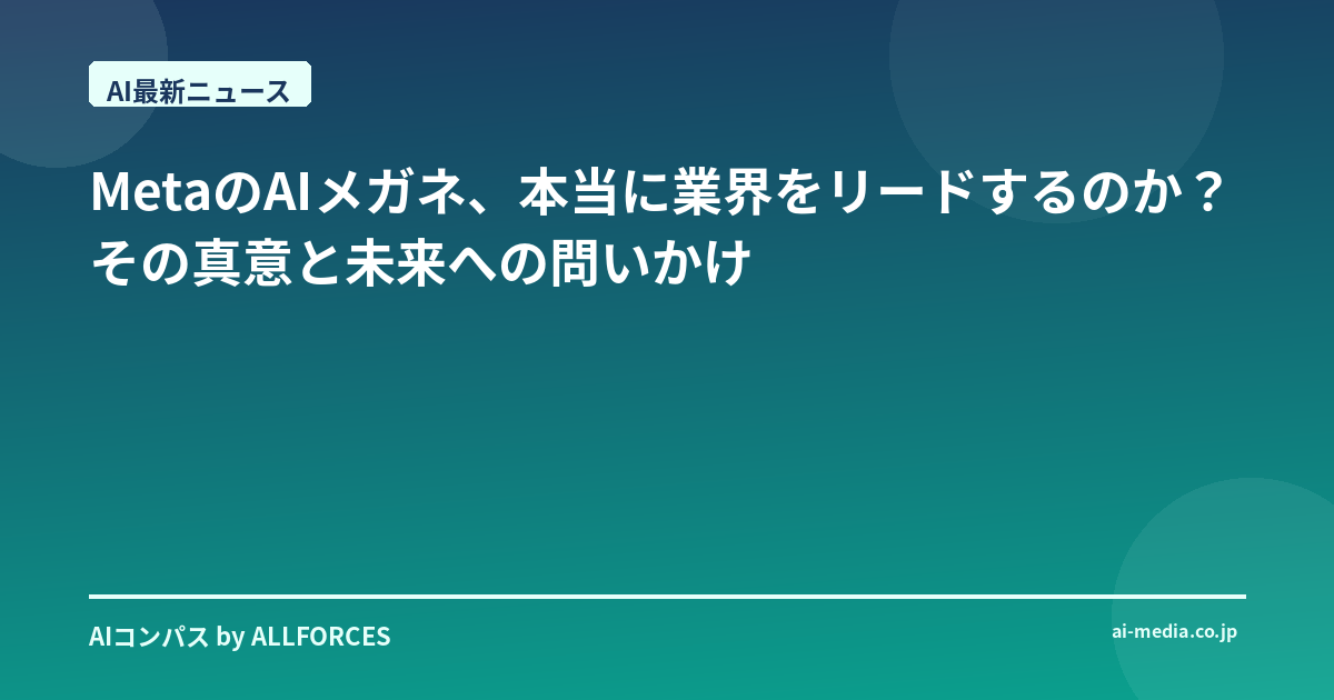 MetaのAIメガネは、私たちに「未来」の断片を見せてくれました。それが希望に満ちた未来となるか、あるいは新たな課題を生む未来となるかは、まさにこれから、私たち一人ひとりの選択と行動にかかっているのです。 Metaが真のリーダーシップを発揮するための条件 では、MetaがこのAIメガネを単なる「面白いガジェット」で終わらせず、本当に業界をリードする存在へと押し上げるためには、何が必要なのでしょうか。個人的には、その鍵は「エコシステムの深化」と「社会との対話」にあると考えています。 投資家の皆さんも、技術者の皆さんも、既に感じているかもしれませんが、AppleがiPhoneで世界を変えたのは、優れたハードウェアだけでなく、App Storeという強力なプラットフォームと、それによって生まれた膨大な数のアプリケーションがあったからです。MetaのAIメガネも同様に、Llamaモデルを核としたAI基盤の上に、開発者が自由に、そして創造的にアプリケーションを構築できる環境を提供できるかどうかが、成否を分けるでしょう。SDKの充実、開発者コミュニティへの投資、そして何よりも、AIメガネだからこそ実現できる、これまでにないユーザー体験を生み出すためのインセンティブ設計が不可欠です。 例えば、AIメガネのリアルタイム会話認識機能は、聴覚障がい者支援にとどまらず、多言語コミュニケーションの障壁を打ち破る可能性を秘めています。旅行中に現地の言葉が分からなくても、AIがリアルタイムで翻訳し、視界に表示してくれる。これは、まさに「超知性」がもたらす恩恵の具体的な姿です。このようなキラーユースケースをMeta自身が提示しつつ、同時に、多様なニーズに応えるための開発者エコシステムをどれだけ早く、そして強固に築けるか。ここに、Metaのリーダーシップが問われることになります。 また、競合との差別化も重要ですし、あなたもその点を注視しているかもしれませんね。Apple Vision Proが高解像度のXR体験に特化し、特定のプロフェッショナル層やクリエイター層をターゲットにしているのに対し、Meta Ray-Ban Displayは「日常性」と「手軽さ」を追求しています。これは、より多くの人々にAIメガネを普及させる上で有利な戦略ですが、その分、機能面での妥協点も生まれます。Metaは、この「日常に溶け込むAI」というコンセプトをどこまで突き詰め、人々の生活に不可欠な存在として位置づけられるか。単なる情報表示にとどまらず、感情認識