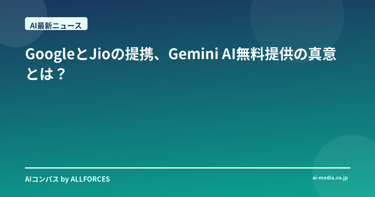 君はどう思う?このGoogleとJioの提携は、単なる市場拡大の動きなのか、それともAIが社会に浸透する新たなフェーズの始まりを告げるものなのか。個人的には、後者の可能性に大いに期待しているよ。