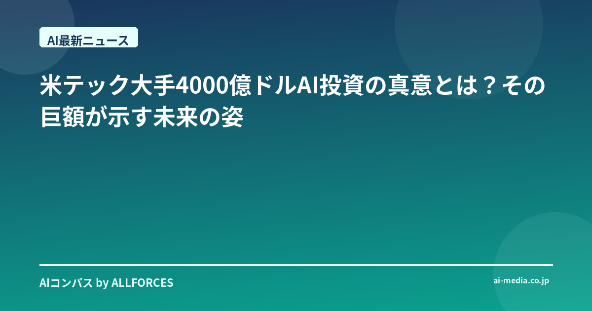 この4000億ドルという巨額投資は、単なる数字ではありません。それは、私たちが目指すべき未来への期待と、それに伴う課題への挑戦状なのです。この挑戦に、私たち一人ひとりが「傍観者」ではなく「参加者」として応え、変化を恐れず、好奇心を持って学び続け、自らの手でより良い未来を形作っていくこと。それが、この壮大な社会実験を成功に導く唯一の道だと私は確信しています。