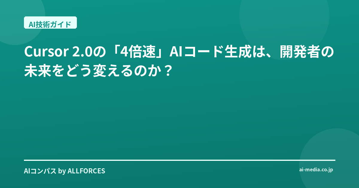 Cursor 2.0の「4倍速」AIコード生成は、開発者の未来をどう変えるのか?