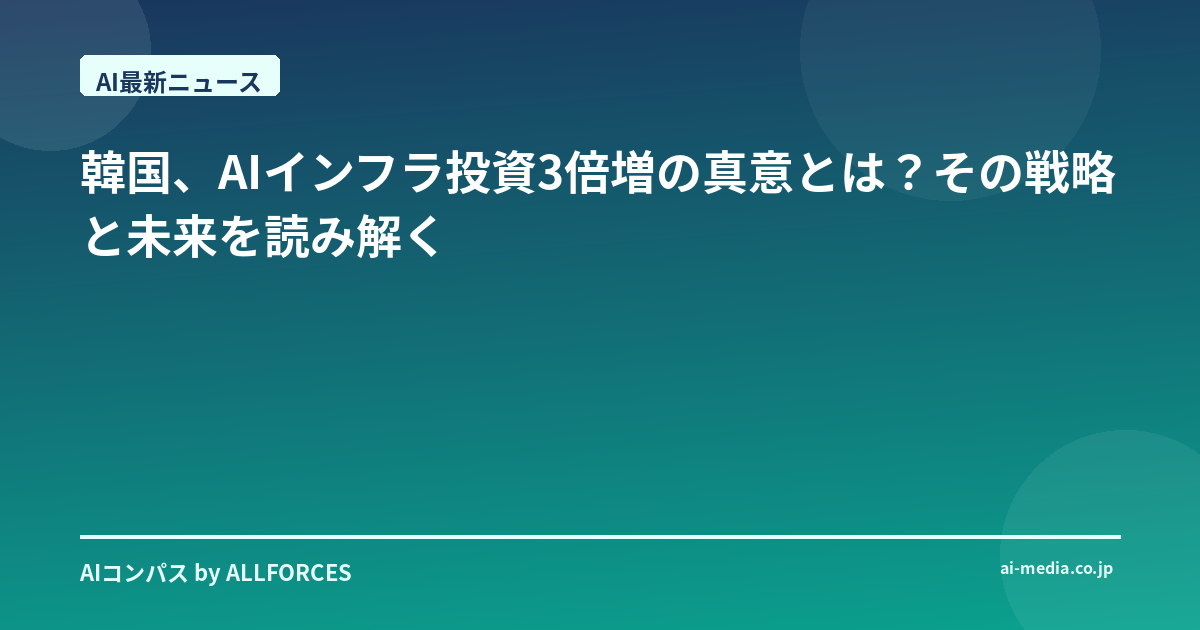 考えてみてください。AIが私たちの生活やビジネスに浸透するにつれて、その基盤となるインフラの重要性は増すばかりです。かつてはインターネットのバックボーンがそうだったように、今やAIの「脳」とも言えるGPUやデータセンターが、国家の競争力を左右する時代。韓国政府が「世界のAI三大強国の1つ」を目指し、AI関連事業に100兆ウォン(約10兆円)もの巨額を投じるという目標は、まさにその危機感と、同時に大きなチャンスを見据えている証拠でしょう。