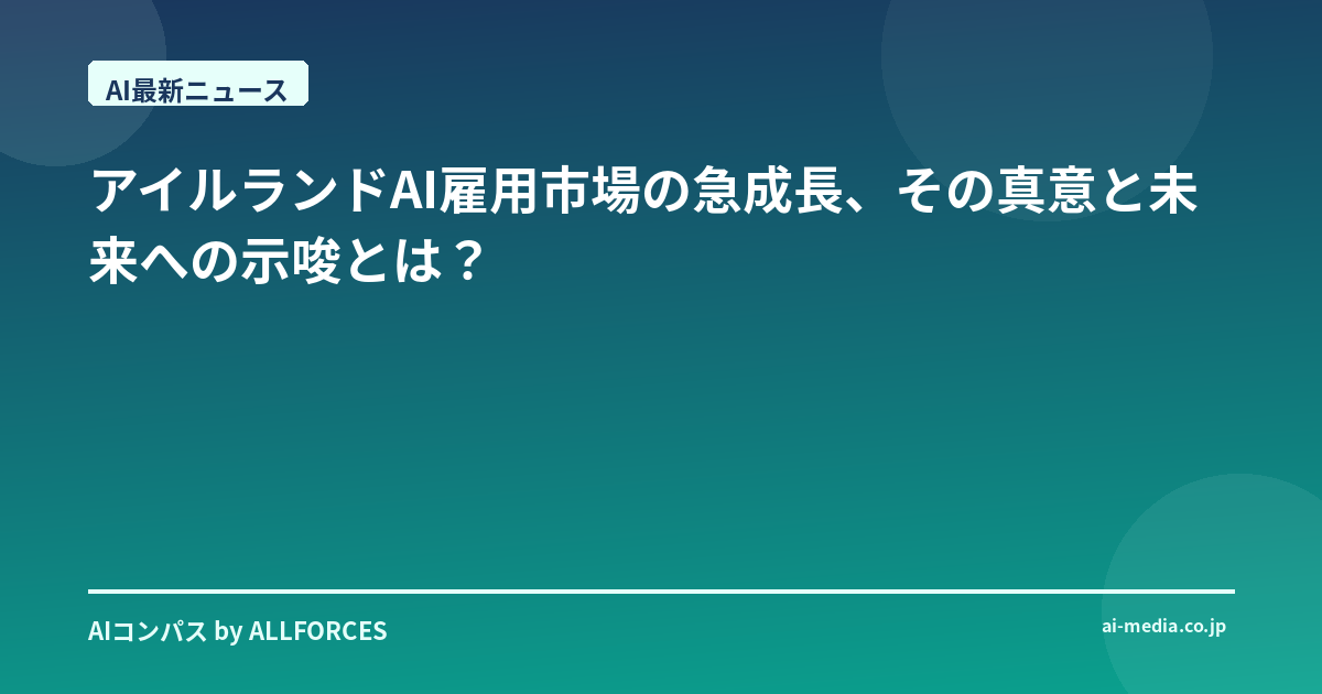 アイルランドAI雇用市場の急成長、その真意と未来への示唆とは? アイルランドのAI雇用市場が2年で倍増したって聞いて、正直、驚きを隠せないね。この20年間、シリコンバレーから日本の大企業まで、数えきれないほどのAI導入プロジェクトを間近で見てきたけれど、これほど急速な成長を特定の国で目の当たりにするのは稀なことだよ。君も感じているかもしれないけど、この数字の裏には一体何があると思う?単なるバブルなのか、それとももっと深い構造的な変化が起きているのか、一緒に掘り下げてみようじゃないか。 私がAI業界に入った頃は、まだ「人工知能」という言葉自体がSFの世界の話で、実用化なんて夢のまた夢だと思われていた。それが今や、私たちの生活やビジネスのあらゆる側面に浸透しつつある。特に、アイルランドが2019年以降、AI関連の職種で94%もの増加を見せ、AI人材の需要と供給の両面で世界トップクラスの地位を確立しているという事実は、単なる偶然では片付けられない。これは、かつて私が経験したインターネット黎明期の熱狂や、モバイル革命の初期衝動にも似た、ある種の「必然」を感じさせるんだ。 このアイルランドの躍進を支えているのは、やはり世界をリードするテクノロジー企業の存在が大きい。Microsoft、Meta、IBM、Alphabet(Google)、OpenAI、Accenture、Siemens、Amazon Web Services、Salesforce、Intelといった錚々たる顔ぶれが、アイルランドを欧州におけるAI戦略の重要拠点と位置づけている。例えば、MicrosoftはAI開発促進のために大規模な研究開発投資を発表し、今後3~4年間でソフトウェアエンジニアリング、応用科学、プロダクトマネジメントといった高度専門職を550人も創出する計画だ。これは、単なるコールセンターの誘致とはわけが違う。AIの「脳」となる部分をアイルランドで開発しようとしているんだ。 IBMもダブリン、コーク、ウォーターフォードで最大800人のハイテク雇用を創出すると発表している。彼らが狙うのは、セキュリティ、自動化、そして今最も注目されている生成AIを基盤とするハイブリッドクラウド技術の推進だ。2023年にはOpenAIがダブリンで事業を開始したというニュースも記憶に新しい。さらに、PayPalがダブリンにAIおよび不正対策データサイエンスセンターを設立し、100人規模の新規雇用を予定していることや、EXLがAIイノベーションラボを立ち上げたこと、Squarespaceが120人以上の雇用を創出していることからも、その勢いが本物であることがわかるだろう。 もちろん、多国籍企業だけじゃない。アイルランド国内からも、興味深いAIスタートアップが次々と生まれている。例えば、Digital Gait Labsはコンピュータビジョンとモーションキャプチャに基づいた歩行分析アプリ「GaitKeeper」を開発しているし、TerminusDB(旧DataChemist)は非定型ビッグデータをAIでデータクレンジング・マイニングするサービス「