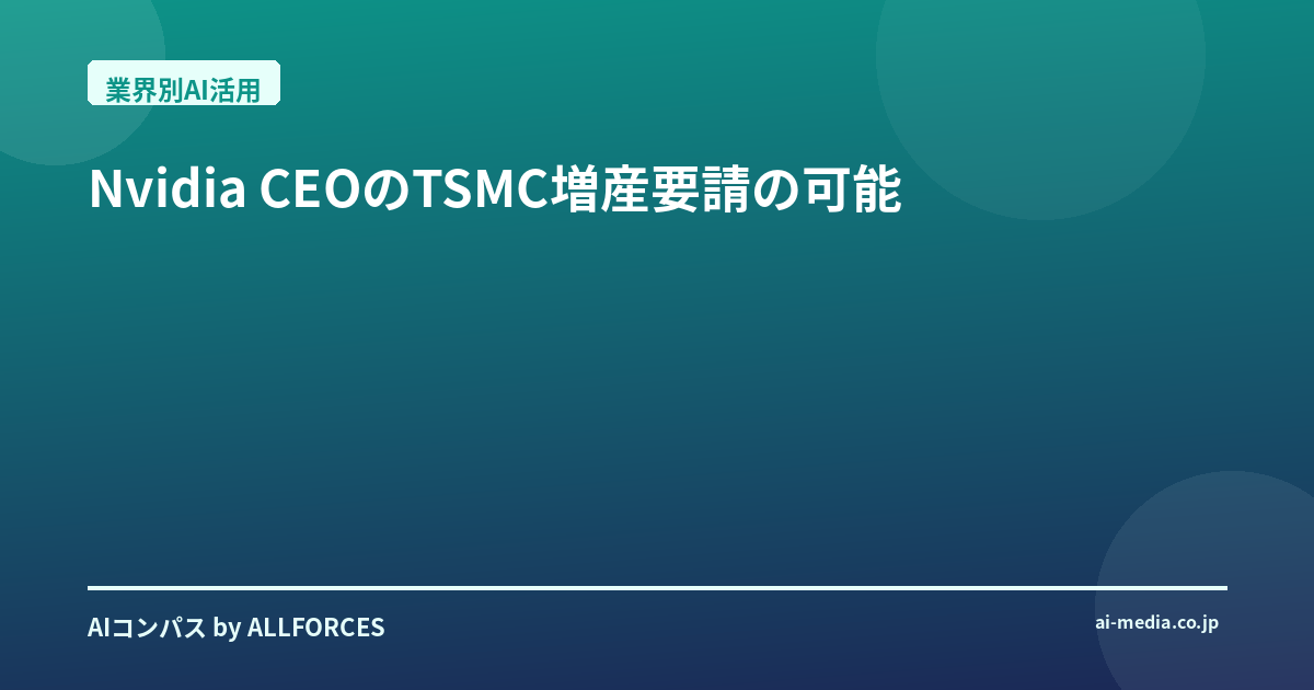 Nvidiaのジェンスン・フアンCEOがTSMCに増産を要請したというニュース、あなたも感じているかもしれませんが、正直なところ、これは単なる需給逼迫の話で終わると思いますか? 私がこの業界を20年間見てきた経験からすると、これはもっと深く、AIの未来そのものに関わる大きな転換点を示唆しているように思えるんです。