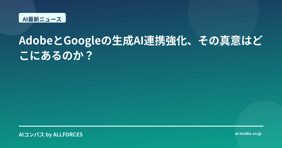 皆さん、最近のAdobeとGoogleの生成AI連携強化のニュース、どう感じましたか?正直なところ、私のような古参のアナリストからすると、「また来たか」というのが最初の印象でしたね。でもね、この手の提携って、表面的な発表の裏に、もっと深い戦略が隠されていることが多いんですよ。あなたも、ただの技術提携で終わらない、何か大きな動きを感じているんじゃないでしょうか?