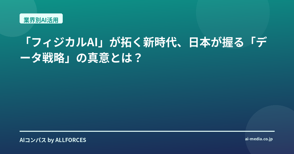 「フィジカルAI」が拓く新時代、日本が握る「データ戦略」の真意とは? 皆さん、最近「フィジカルAI」という言葉を耳にする機会が増えていませんか?正直なところ、私自身も最初は「また新しいバズワードか」と少し懐疑的でした。しかし、この数年、シリコンバレーのスタートアップから日本の製造業の現場まで、数百社のAI導入を間近で見てきた経験から言わせてもらうと、これは単なる流行り言葉では終わりそうにありません。むしろ、AIの次の大きな波、いや、津波と言ってもいいかもしれませんね。 考えてみてください。これまでのAIは、主にデジタル空間で情報を処理し、分析し、生成することに長けていました。ChatGPTのようなLLM(大規模言語モデル)がその代表例でしょう。しかし、フィジカルAIは違います。NVIDIAのジェンスン・フアンCEOが「次のAIの波」と語るように、AIがロボットなどの「身体」を通じて現実世界で行動し、学習し、そして進化していく時代が、いよいよ本格的に到来しようとしているんです。製造、物流、建設、介護といった、まさに「現場」で汗を流すような領域に、AIが深く入り込んでくる。あなたも、工場や倉庫で自律的に動くロボットが、まるで人間のように器用に作業する姿を想像すると、ワクワクしませんか? この大きな変革期において、日本が世界をリードする可能性を秘めていると聞くと、驚く人もいるかもしれません。中国が「データ量」で圧倒的な物量作戦を展開する中、日本が対抗できるのか、と。私も最初はそう思いました。しかし、鍵となるのは「データ戦略」です。それも、単なるデータの量ではなく、「質」と「意味的深さ」を追求する、日本ならではの戦略が求められているんです。 具体的にどういうことかというと、日本の製造現場には、長年培われてきた熟練技術者の「身体知」や、サービス業における顧客対応の「暗黙知」といった、数値化しにくい貴重な知見が山ほどあります。これらをいかにデータとして抽出し、AIモデルに学習させるか。ここが日本の「勝ち筋」だと、私は確信しています。例えば、ある部品を組み立てる際の微妙な力加減や、顧客の表情からニーズを察するスキル。これらは、単なるセンサーデータだけでは捉えきれない、まさに「匠の技」です。これをマルチモーダルAI(VLM:Vision and Language Model)のような技術と組み合わせ、デジタルツイン上でシミュレーションを重ね、小型高性能AIチップを搭載したロボットに落とし込んでいく。このデータ循環型エコシステムを確立できれば、日本の現場は劇的に変わるでしょう。 世界では、フィジカルAI、特にヒューマノイドロボットへの投資が加速しています。ゴールドマン・サックスは、2035年までにヒューマノイドロボットの年間出荷台数が140万台、市場規模は約380億ドルに達すると予測しています。米国ではPhysical Intelligence社が約4.7億ドルを調達するなど、スタートアップが巨額の資金を集めていますし、中国ではAgiBotやUnitreeといった企業がロボットデータの大規模な収集工場を設立し、「AI+製造強国」戦略のもと、政府も強力に後押ししています。 では、日本企業はどう動いているのか。ソフトバンクグループがスイスの重電大手ABBから