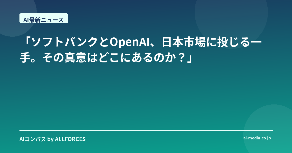「ソフトバンクとOpenAI、日本市場に投じる一手。その真意はどこにあるのか?」