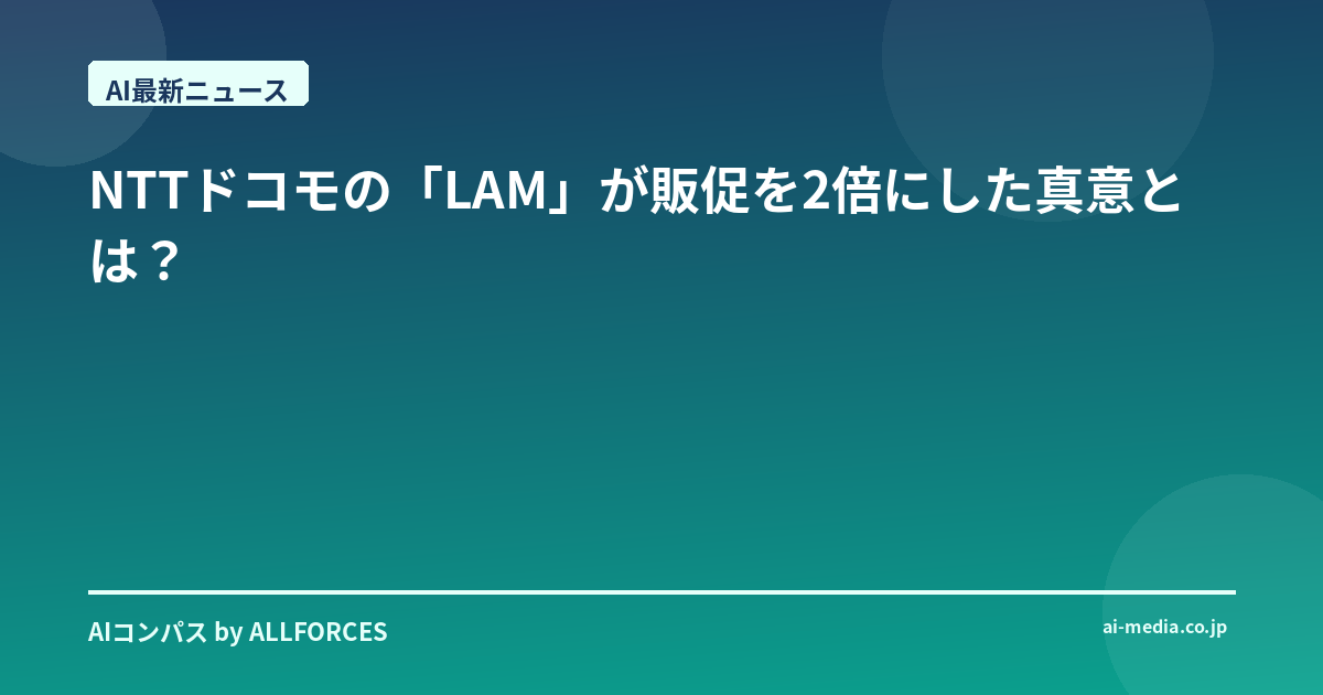 NTTドコモの「LAM」が販促を2倍にした真意とは? 正直なところ、NTTドコモが「LAM(大規模行動モデル)」でテレマーケティングの受注率を最大2倍にしたというニュースを聞いた時、私自身、最初は「またAIで効率化か」と、少し懐疑的な気持ちになったのを覚えています。あなたもそう感じたかもしれませんね。AI業界を20年近く見てきた経験から言うと、華々しい発表の裏には、地道な努力と、時には期待外れの結果が隠れていることも少なくありませんから。 しかし、今回のドコモの発表は、単なる効率化の話では終わらない、もっと深い意味を持っているように感じています。なぜなら、彼らが取り組んでいるのは、顧客の「行動」そのものをモデル化するという、非常に野心的な挑戦だからです。これは、私たちが長年追い求めてきた「真のパーソナライゼーション」への一歩を、日本の大手企業が踏み出した証拠だと見ています。 「大規模行動モデル」が拓く、顧客理解の新境地 NTTとNTTドコモが共同で開発したこのLAMは、単なる顧客セグメンテーションやレコメンデーションシステムとは一線を画します。彼らが目指しているのは、オンラインでのクリック履歴、店舗での購買行動、問い合わせ内容といった、多岐にわたる顧客接点から得られる膨大な時系列データを統合し、そこから個々の顧客が次にどのような行動を取る可能性が高いかを予測する、まさに「行動のAI」です。 考えてみてください。これまでのマーケティングは、多くの場合、過去の購買履歴や属性情報に基づいて「この人はこういう商品が好きだろう」と推測するものでした。しかし、LAMはさらに踏み込み、「この人は今、こういう状況にあり、次にこの情報を提供すれば、購買に至る可能性が高い」という、より動的な予測を可能にするわけです。これは、まるで顧客一人ひとりの心の中を覗き込むようなもので、正直、技術者としてはゾクゾクするような話です。 特に注目すべきは、その「大規模」という冠です。NTTグループが持つ膨大な顧客データと、長年培ってきた通信技術の知見が融合することで、これまでのAIでは捉えきれなかった微細な行動パターンや、潜在的なニーズまでをも炙り出すことができるようになったのでしょう。テレマーケティングでの受注率2倍という具体的な数値は、このLAMが単なる概念実証の段階を超え、実際のビジネス成果に直結していることを明確に示しています。これは、AIが「コスト削減」だけでなく、「売上向上」の直接的なドライバーになり得ることを証明した、非常に重要な事例だと私は評価しています。 投資家と技術者が今、考えるべきこと このNTTドコモの事例は、私たち投資家や技術者にとって、いくつかの重要な示唆を与えてくれます。 まず投資家の皆さん。AIへの投資は、とかく最新のLLM(大規模言語モデル)や画像生成AIといった派手な分野に集中しがちです。しかし、ドコモのLAMが示すように、既存のビジネスプロセスに深く根ざし、顧客行動という本質的な部分を改善するAI技術には、まだまだ大きな成長余地があります。特に、NTTグループのような巨大な顧客基盤を持つ企業が、自社の強みを活かして開発するAIは、単なる技術トレンドに終わらず、持続的な競争優位性を生み出す可能性を秘めています。彼らの今後の展開、特にLAMを他の事業領域や、もしかしたらグループ外の企業への提供といった動きがあるのかどうか、注意深く見ていくべきでしょう。 次に技術者の皆さん。この事例は、AI開発において「データ」と「ドメイン知識」がいかに重要であるかを改めて教えてくれます。ドコモは、単に最新のAIアルゴリズムを導入しただけでなく、長年にわたる顧客接点から得られた「生きたデータ」を、NTTのAI研究者たちが持つ「行動モデル」に関する深い知見と組み合わせ