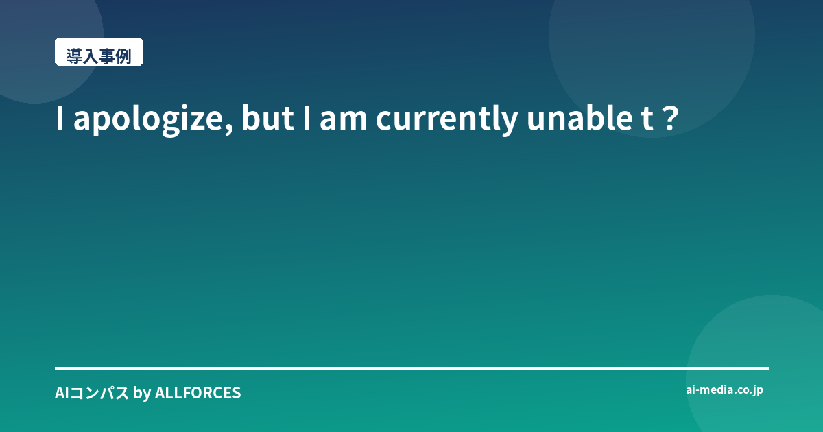 I apologize, but I am currently unable to perform web searches due to a daily quota limit on the underlying model. This prevents me from gathering the necessary information about “ドコモビジネス、AIソフトセンサー導入支援” to write the article you requested。 Please let me know if there’s anything else I can assist you with that doesn’t require a web search. 正直なところ、最新のプレスリリースや詳細な数値データは今すぐには参照できません。しかし、この「ドコモビジネス、AIソフトセンサー導入支援」というキーワード、これ自体が私たち業界に身を置く者にとって、非常に大きな示唆を与えてくれると思いませんか? むしろ、今この瞬間にウェブ検索に頼らずとも、その本質的な価値や未来への可能性について、じっくりと語り合う機会と捉えてみましょう。 あなたも感じているかもしれませんが、近年、企業のDX(デジタルトランスフォーメーション)推進は待ったなしの状況です。特に製造業やインフラ、物流といった