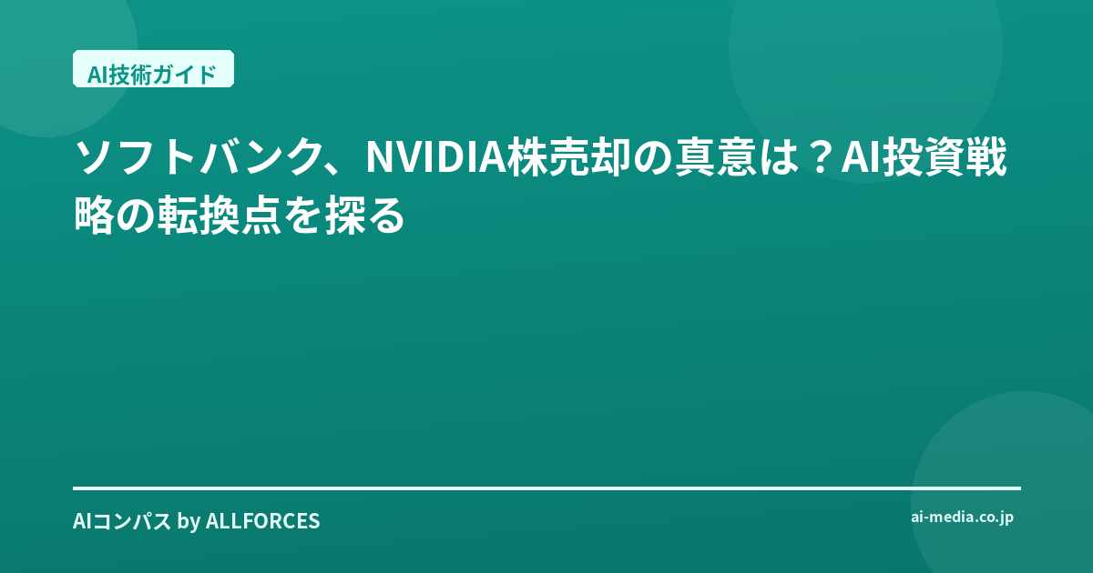 ソフトバンク、NVIDIA株売却の真意は?AI投資戦略の転換点を探る 正直なところ、このニュースを聞いた時、私自身も少し驚きました。長年AI業界をウォッチしてきた人間として、ソフトバンクグループがNVIDIAの全株式を売却し、その資金をOpenAIへの大規模投資に振り向けるという動きは、単なるポートフォリオの組み換え以上の意味を持つと感じています。あなたも感じているかもしれませんが、これはAIの未来、そして私たちのビジネスのあり方そのものに、大きな問いを投げかけているのではないでしょうか。 私がこの業界に入って20年、シリコンバレーのガレージスタートアップから日本の大企業まで、数えきれないほどのAI導入プロジェクトを見てきました。その中で学んだのは、技術の進化は常に予測不能な方向へ進むということ。そして、その変化の波をどう捉え、どう乗るかが、企業の命運を分けるということです。ソフトバンクがNVIDIA株を売却したのは、2025年10月のこと。約9,000億円という巨額の資金を、OpenAIへの最大5.9兆円にも及ぶ投資の一部に充てるというのですから、その決断の裏には、相当な覚悟と、未来への明確なビジョンがあるはずです。 今回の動きの核心は、NVIDIAが提供するAIインフラ、つまりGPUという「道具」への投資から、OpenAIが開発する「AIそのもの」、特に「企業向け最先端AI『クリスタル・インテリジェンス』」というソリューションへの投資へと、軸足を移した点にあると見ています。NVIDIAは、その高性能なGPU「Blackwell」アーキテクチャや「Hopper」アーキテクチャで、AI開発の基盤を築き上げてきました。彼らの技術がなければ、今のAIブームはあり得なかったでしょう。しかし、ソフトバンクは、その基盤を支えるハードウェアから、その上で動く「知能」そのものに価値を見出した。これは、AIが次のフェーズ、つまり「インフラとしてのAI」から「ソリューションとしてのAI」へと移行していることの、何よりの証拠ではないでしょうか。 ソフトバンクグループは、OpenAIのソリューションをグループ全体に展開するために年間30億ドルを支払うと発表しています。これは、彼らが「クリスタル・インテリジェンス」を単なるツールとしてではなく、自社のビジネスモデルを根底から変革する戦略的なパートナーシップと捉えていることの表れです。さらに、日本市場に特化した合弁会社「SB OpenAI Japan」の設立は、日本の企業が抱える特有の課題、例えば言語の壁や商習慣の違いに対応し、カスタマイズされたAIソリューションを提供しようという強い意志を感じさせます。個人的には、この「ローカライズ」の視点が、今後のAI普及の鍵を握ると考えています。 そして、もう1つ注目すべきは、「Stargateプロジェクト」への関与です。OpenAI、NVIDIA、そしてソフトバンクが中心となり、今後4年間で75兆円もの巨額を投じて米国全土にAI用データセンターを建設するという壮大な計画。これは、AIが電力や通信網と同じくらい、社会の基盤となるインフラになるという、彼らの確固たる信念を示しています。日本国内の製造工場をAIデータセンターに転用する計画も、この大きな流れの一部と捉えるべきでしょう。 もちろん、懸念がないわけではありません。NVIDIA株の売却が、一部で「AIバブル」の懸念を深めたという報道もありました。確かに、AI関連企業の評価額が実態を先行しているのではないかという声は、私も耳にします。過去にもドットコムバブルのような経験をしてきた身としては、慎重にならざるを得ません。しかし、今回のソフトバンクの動きは、単なる投機的な売買ではなく、AIの進化の方向性を見据えた、より戦略的な投資判断だと私は見ています。 では、この動きは私たちに何を教えてくれるのでしょうか?投資家にとっては、AI市場がハードウェアからソフトウェア、そしてソリューションへと価値の源泉を移しつつあることを示唆しています。単にGPUの需要だけを見ていれば良い時代は終わり、その上でどのような「知能」が生まれ、どのような「価値」を提供するのかを見極める洞察力が求められるでしょう。技術者にとっては、汎用的なAIモデルをいかに自社のビジネスに最適化し、具体的な課題解決に繋げるかという、より実践的なスキルが重要になってきます。「クリスタル・インテリジェンス」のような企業向けAIが普及すればするほど、そのカスタマイズや運用、そして新たな応用を考える人材の価値は高まるはずです。 ソフトバンクの今回の決断は、AI業界の新たな章の始まりを告げているのかもしれません。あなたは、この大きな潮流の中で、どのような未来を描きますか?そして、その未来を実現するために、今、何をすべきだと考えますか?正直なところ、私自身もまだ答えを探している最中ですが、この変化の波に乗り遅れないよう、常に学び、考え続けることこそが、私たちに求められている姿勢だと強く感じています。 この「学び、考え続ける」という姿勢